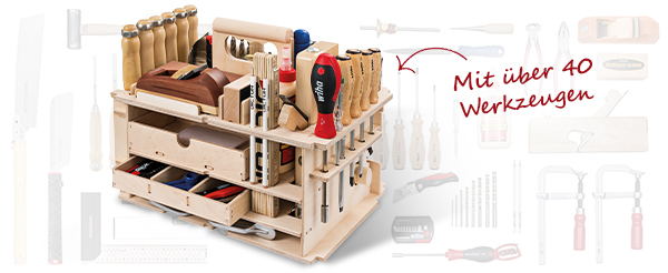 - Mit Stemmeisen, Sägen, Hobel, Mess- und Spannwerkzeugen für alle typischen Holzarbeiten von Zuschnitt bis Montage