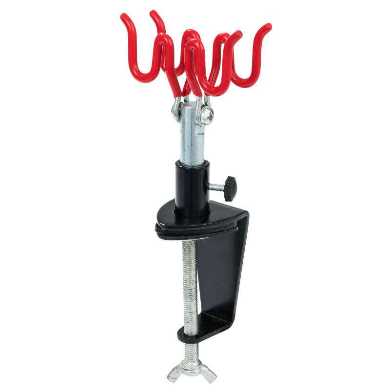 Der 2-fach Airbrushhalter erleichtert das Arbeiten, vor allem, wenn man mit zwei Airbrush-Pistolen arbeitet. Das spart Zeit, da häufiger Farbwechsel entfällt. Der Halter wird mittels Tischklammer an der Tischplatte befestigt.