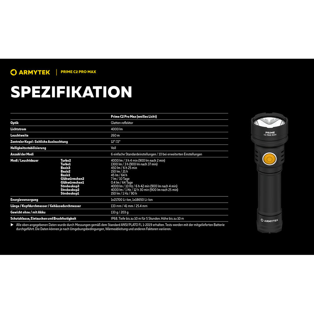 - Prime C2 Pro Max Taschenlampe
