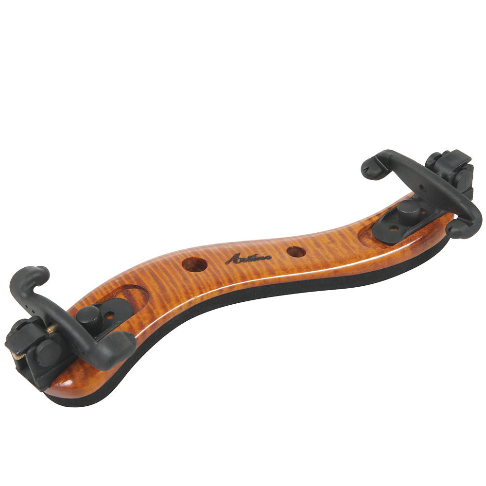 Korpus aus geflammtem Ahorn mit zwei Resonanzlöchern und Schaumstoffpolster. Schwarze Halter und Schrauben. Klappbare Füße, gummiert und rutschsicher, verstellbar in Höhe und Breite.