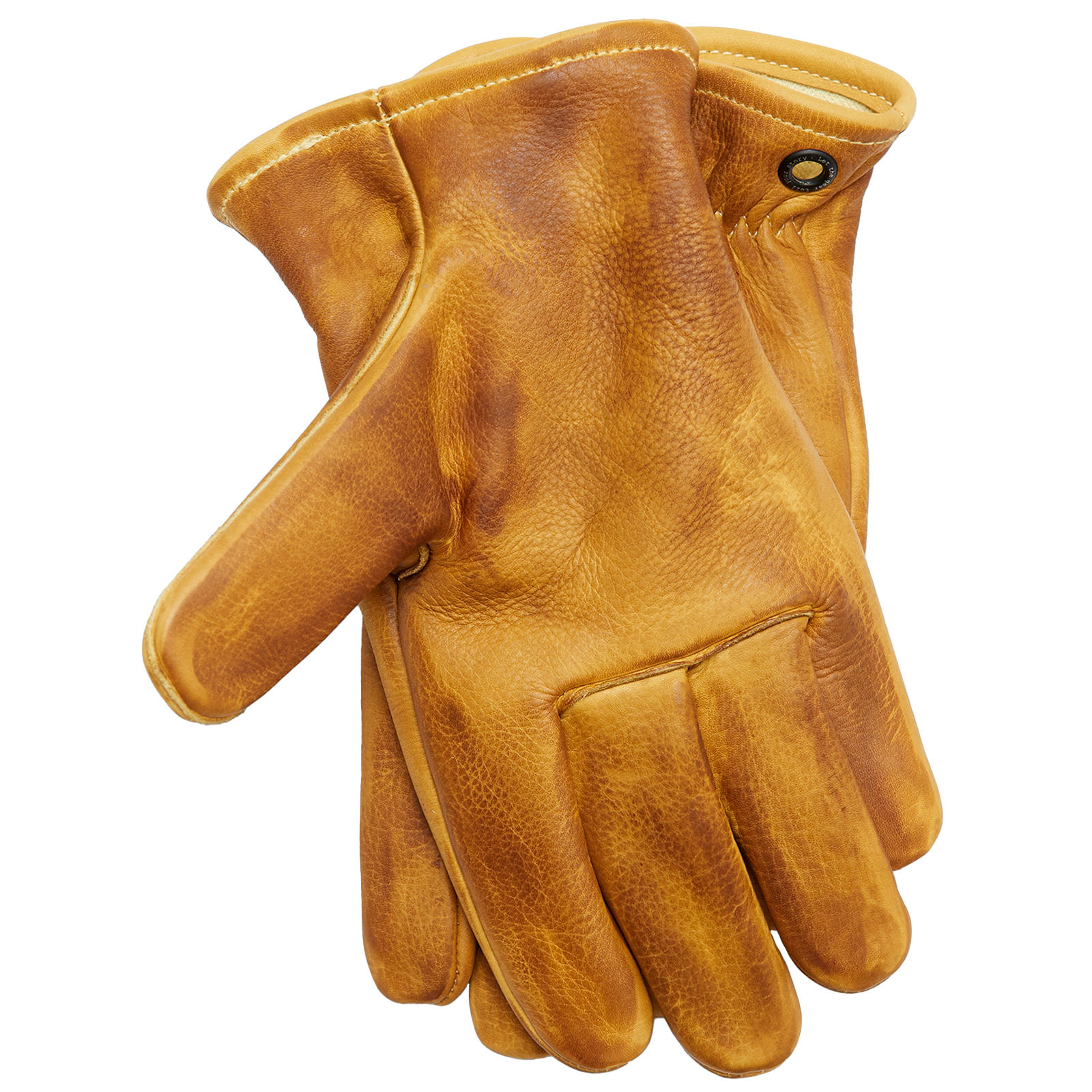 Durch die manuelle Wachsbehandlung erhält jedes Paar Handschuhe seinen eigenen, individuellen Farbton und Charakter. Eine praktische schwarze Messingöse ermöglicht die Befestigung an Rucksack, Gürtel oder Schlüsselanhänger – so bleiben die Handschuhe auch im unwegsamen Gelände stets griffbereit.