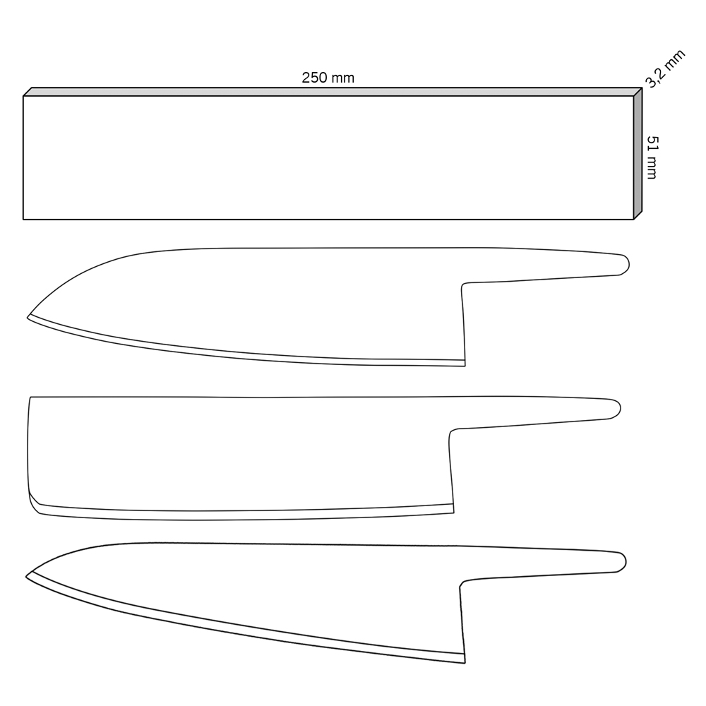| Abmaße: | Küchenmesserquerschnitt 51 x 3,2 x 250 mm |