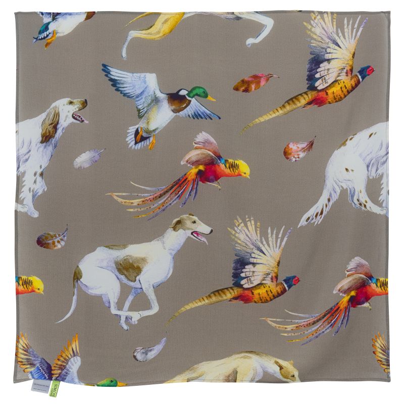 Damen Seiden-Foulard »Dogs & Birds«, 80 x 80 cm, taupe
