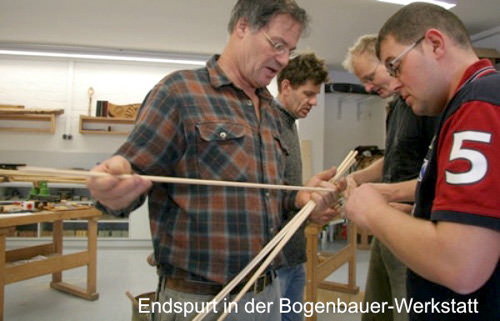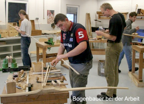 Einen Bogen zu bauen, stellt, insbesondere für Neulinge, eine handwerkliche Herausforderung dar. In unseren Bogenbaukursen garantieren wir optimale Betreuung durch Arbeit in kleinen Gruppen (max. 5 Teilnehmer).