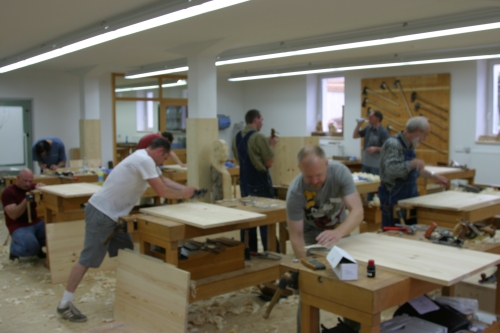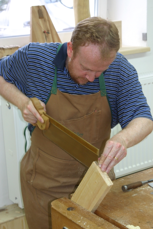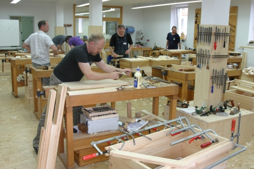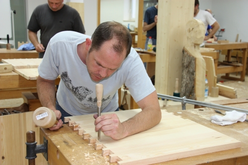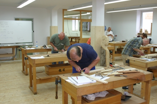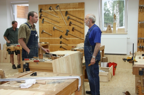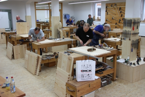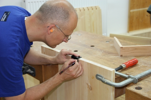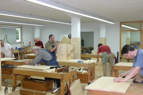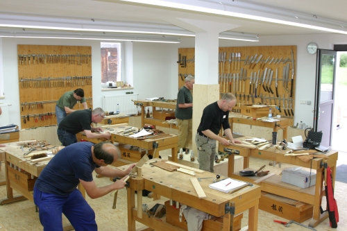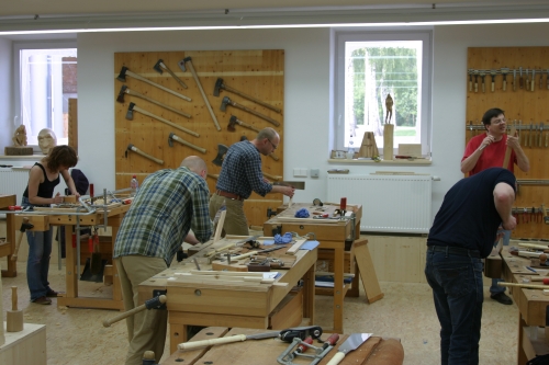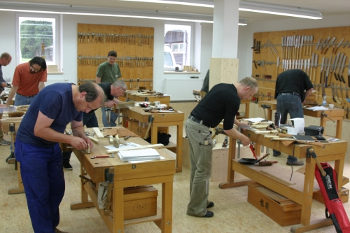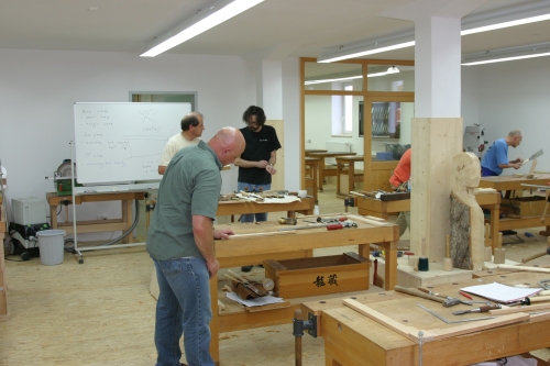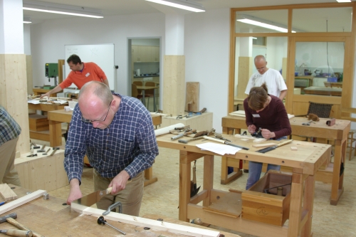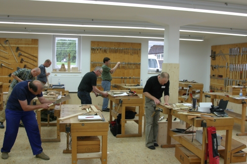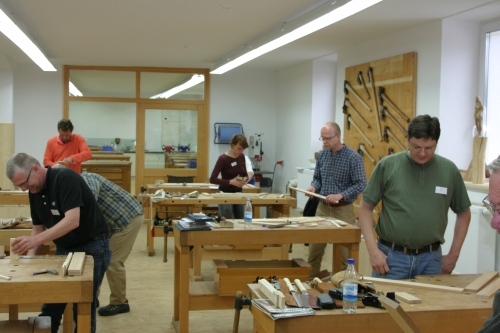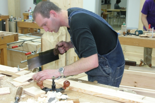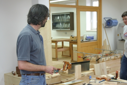 Teilnehmer aus aller Welt waren vom 20.-26.06.2011 in die neue DICTUM-Kurswerkstatt nach Niederalteich gereist, um ihre Handwerkstechnik zu verfeinern, um Neues zu lernen und unter Anleitung von Chris an einem Projekt zu arbeiten. Im Rahmen eines zweitägigen Kurses stand „Präzises Sägen“ und somit das Einüben der richtigen Sägetechnik auf dem Programm. Auch erfahrene Holzhandwerker waren erstaunt, wie viel Zeit- und Kraftersparnis die Anwendung der richtigen Technik mit sich bringt.
