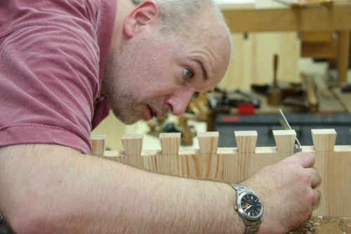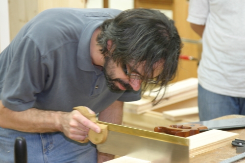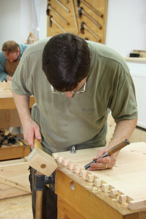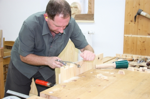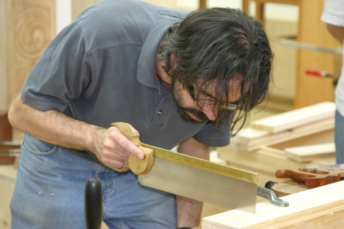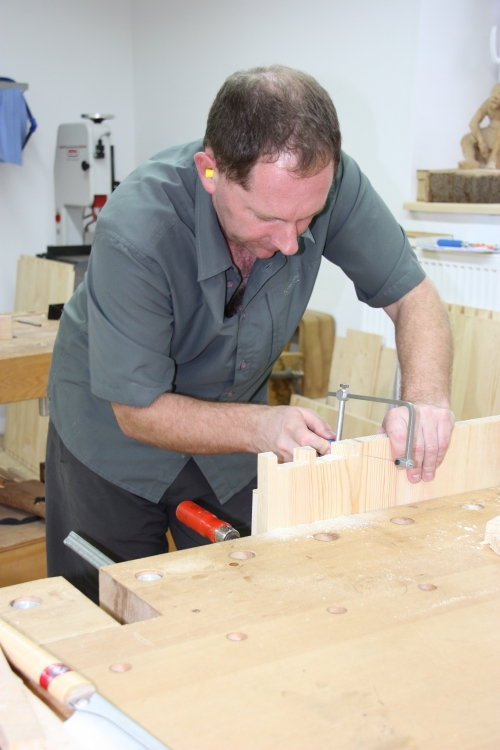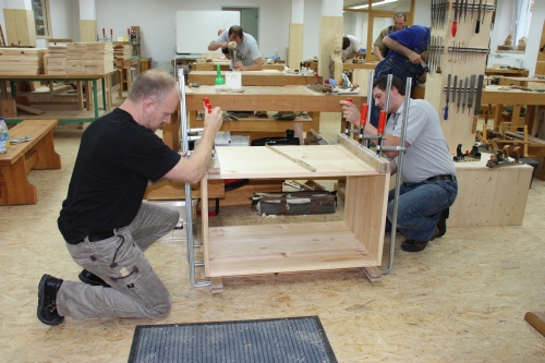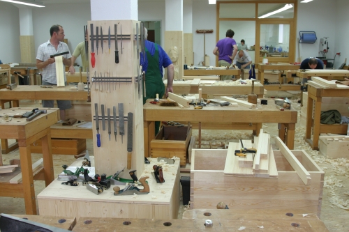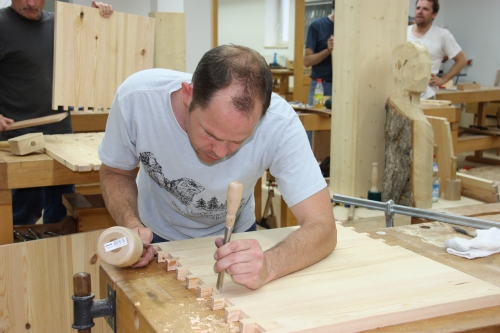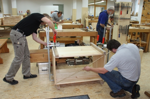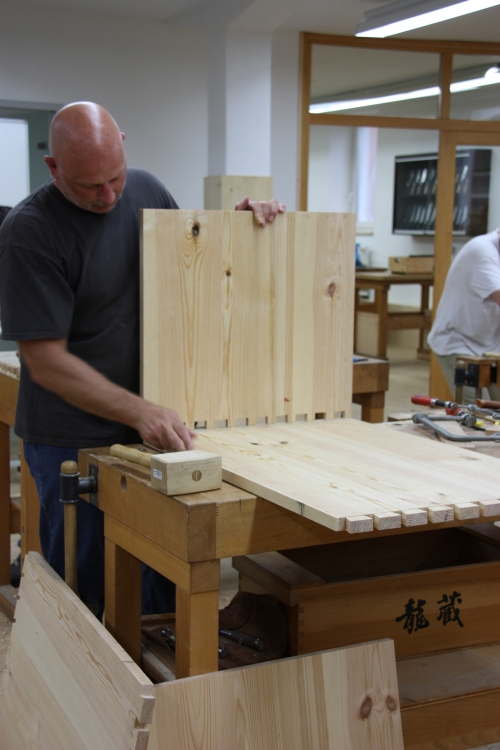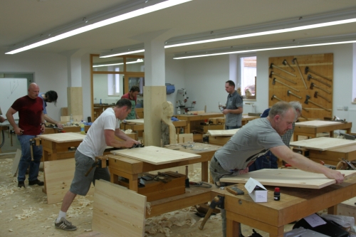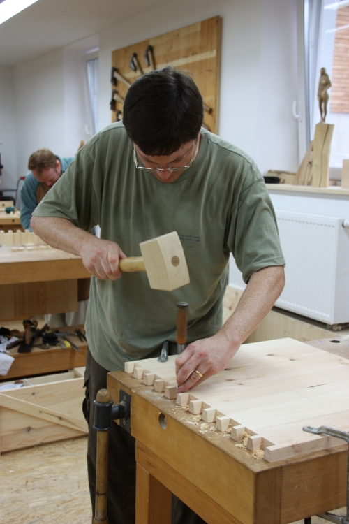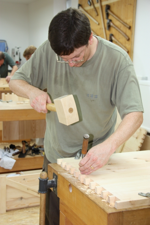 Teilnehmer aus aller Welt waren vom 20.-26.06.2011 in die neue DICTUM-Kurswerkstatt nach Niederalteich gereist, um ihre Handwerkstechnik zu verfeinern, um Neues zu lernen und unter Anleitung von Chris an einem Projekt zu arbeiten. Im Rahmen eines zweitägigen Kurses stand „Präzises Sägen“ und somit das Einüben der richtigen Sägetechnik auf dem Programm. Auch erfahrene Holzhandwerker waren erstaunt, wie viel Zeit- und Kraftersparnis die Anwendung der richtigen Technik mit sich bringt.