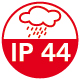 Vollständiger Berührungsschutz, Schutz gegen Staubablagerungen im Innern gegen Sprühwasser.