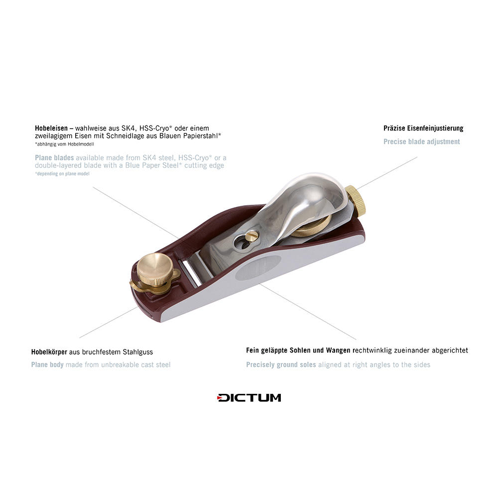 DICTUM® Hobelset aus Einhandhobel, 12° und Schlichthobel Nr. 4½, SK4-Eisen