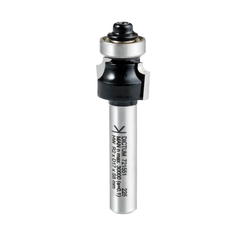 DICTUM® HW-Abrundfräser mit Kugellager, Schaft Ø 8 mm, R 2 mm