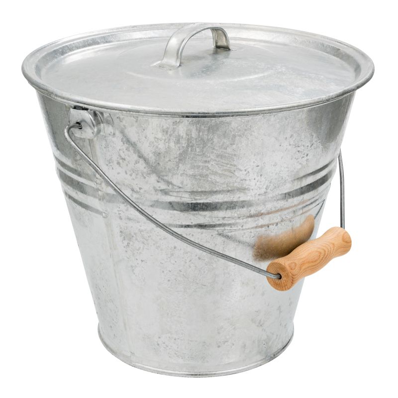 Robuster Eimer mit Deckel aus kalt gewalztem Stahlblech - ideal zum Sammeln von Bioabfällen aus der Küche, heißer Asche, in Leinöl getränkten Lappen oder Gartenabfällen.