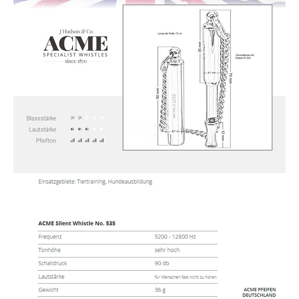 The proven Acme Dog Whistle No. 535 works in a very high frequency range (5400-12 800 Hz), which is why it produces such a high-pitched sound that humans can hardly hear. If you do not want to disturb the peace and quiet in the idyllic surroundings of the forest where you are out and about with your dog with a loud whistle, this high-frequency, elegant dog whistle is ideal for you. Your dog is able to perceive the sound even in very noisy environments and at great distances. You can regulate the pitch precisely by simply turning the whistle and thus condition your dog to an individual frequency.