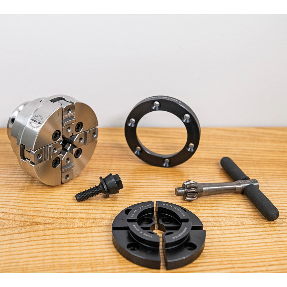 This set comprises the Type E Dovetail Jaws, the Faceplate Ring, and the Chuck Screw, letting you get started straightaway on projects involving both spindle and faceplate work.
