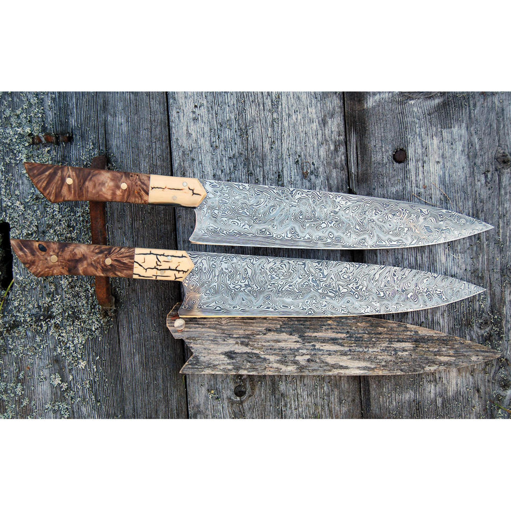 At the beginning of the 1990s, the company Erasteels established a powder metallurgy steel division in Sweden which was later called Damasteel AB. Powder metallurgy technology had already been in use for over twenty years at this point. But even though the steel quality was greatly improved compared to standard production methods and alloys became possible that could not be produced before, it took time to become widely accepted on the market. Using the same technology, the company began producing rustproof Damascus steel and patented this new process. Soon, several large knife manufacturers and smithies saw the potential of the new material which is now also available for end users in a multitude of patterns and sizes.