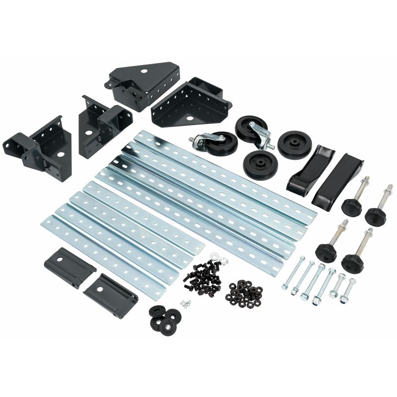 Powder-coated corner brackets, galvanised C-channel. Load capacity 400 kg.