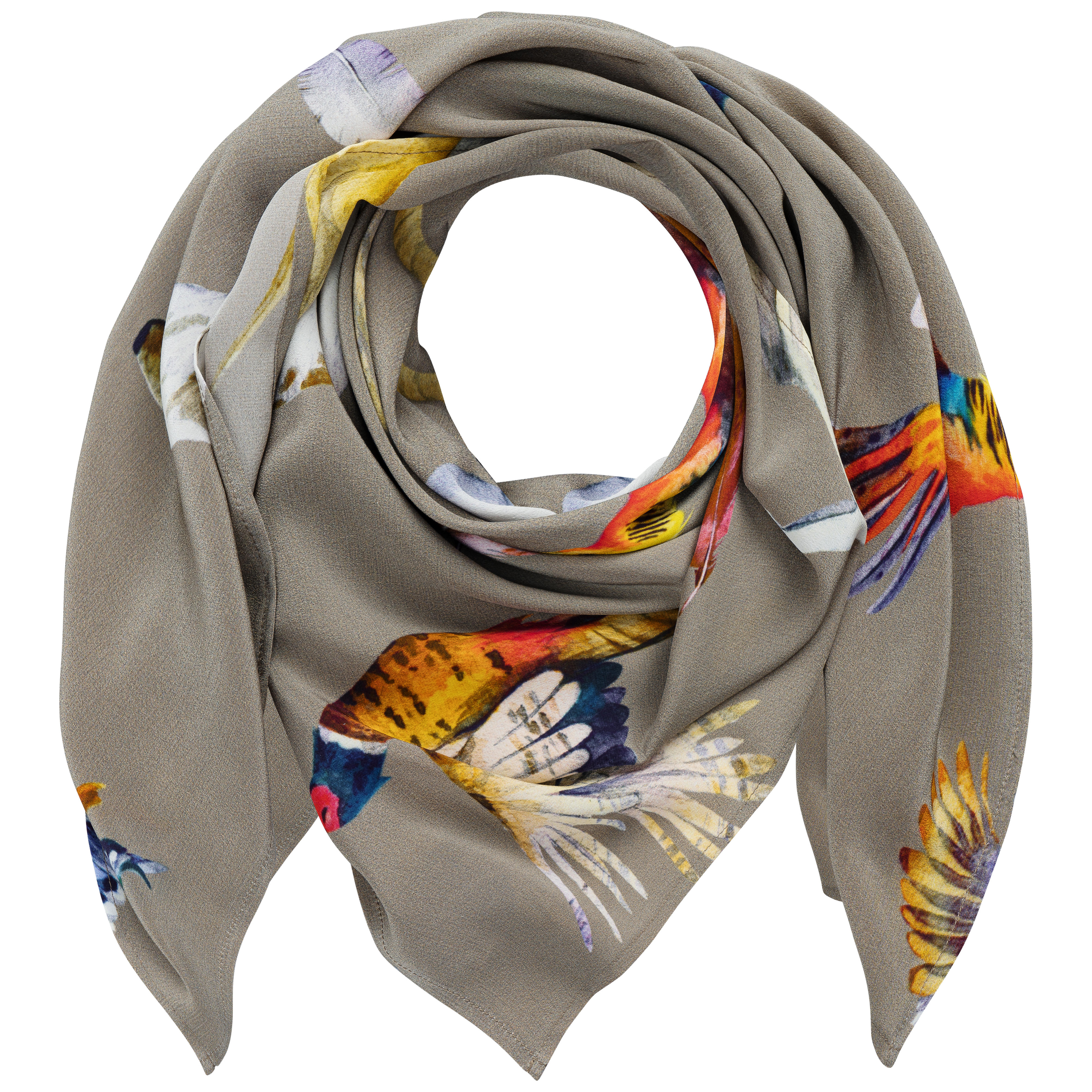 »Dogs & Birds« Ladies' Silk Foulard, 80 x 80 cm, Taupe