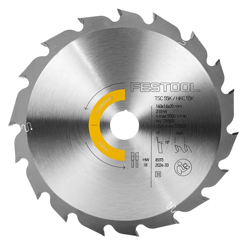 Festool Saw Blade WOOD STANDARD HW 160x1,6x20 W18