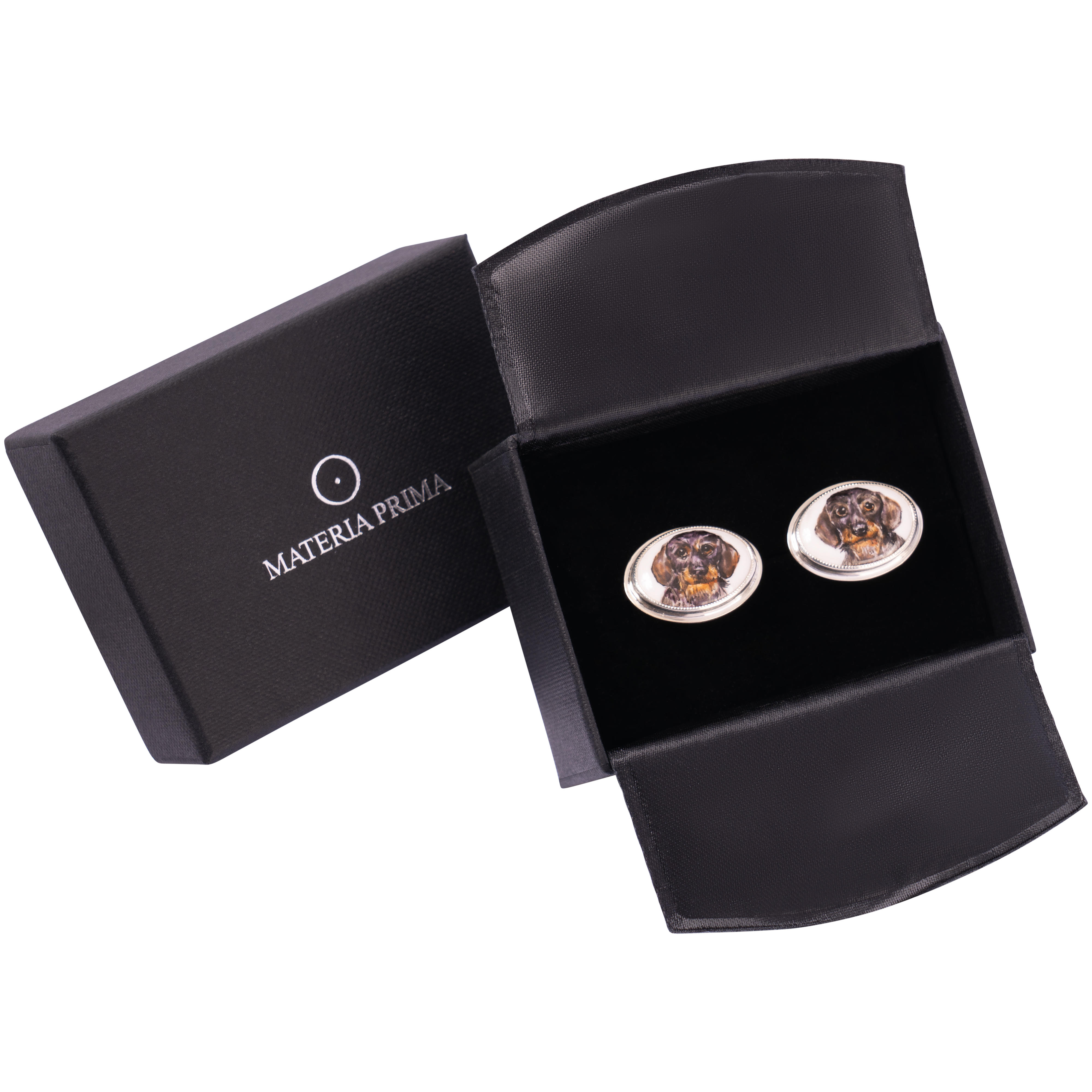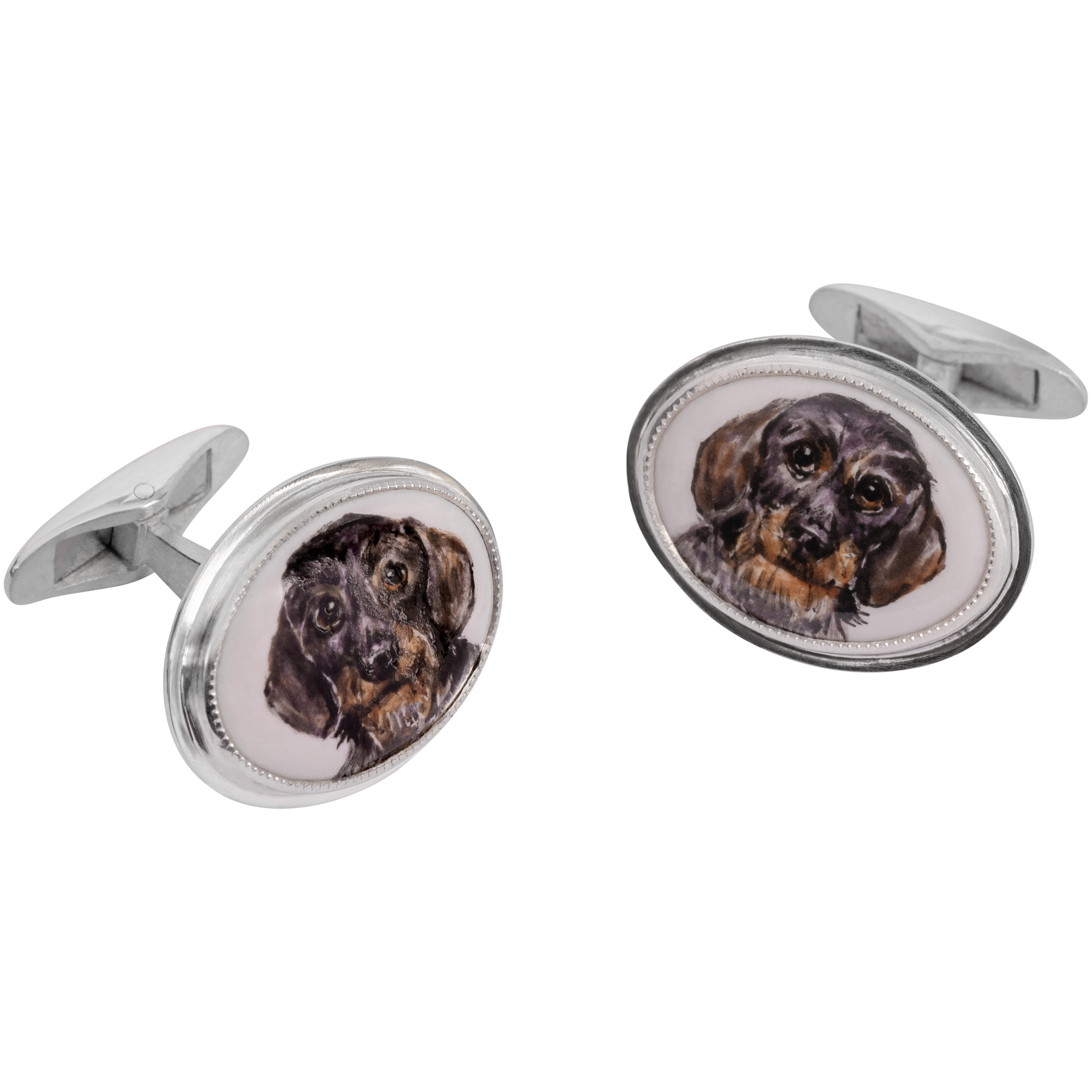 Hand-painted »Dachshund« Cufflinks, Silver