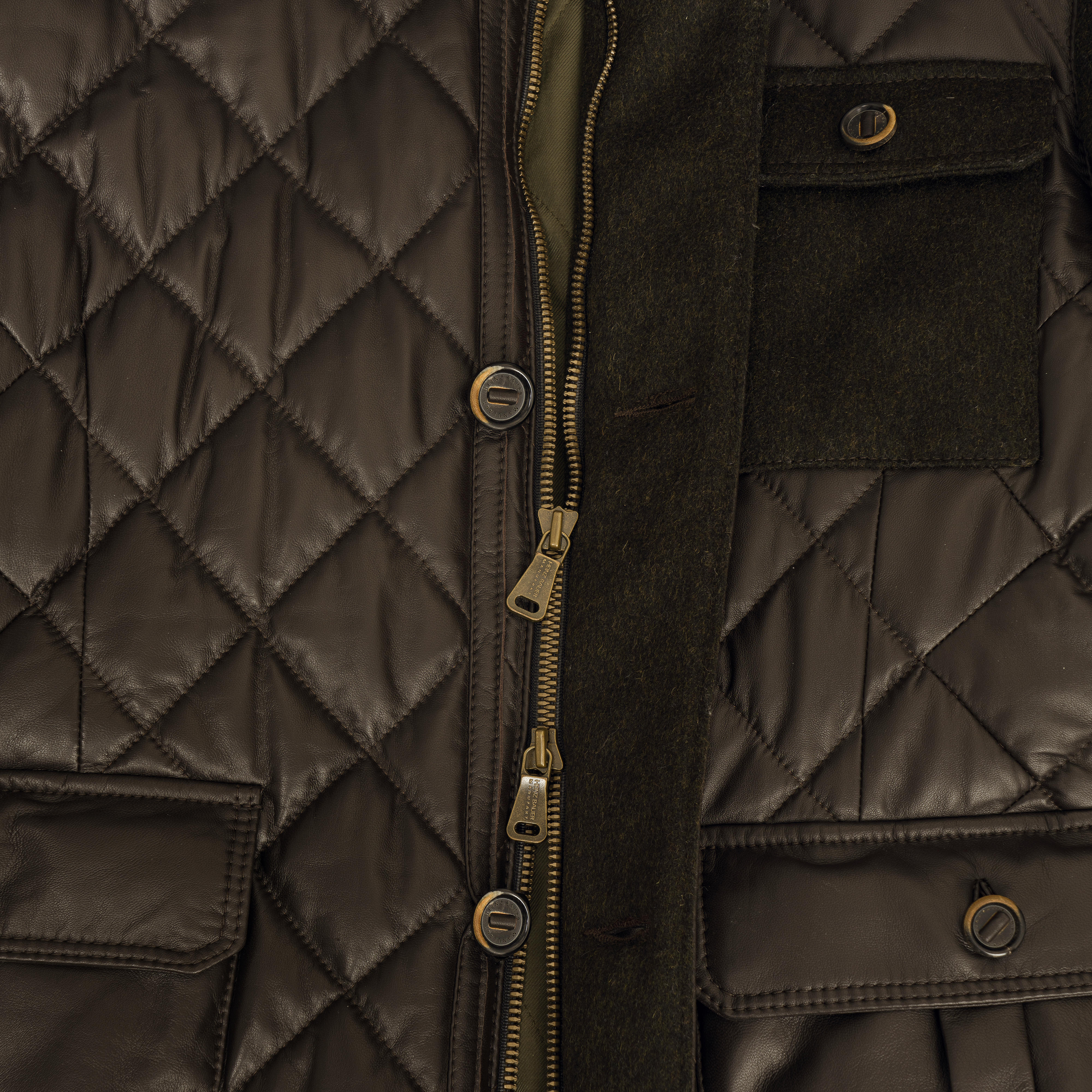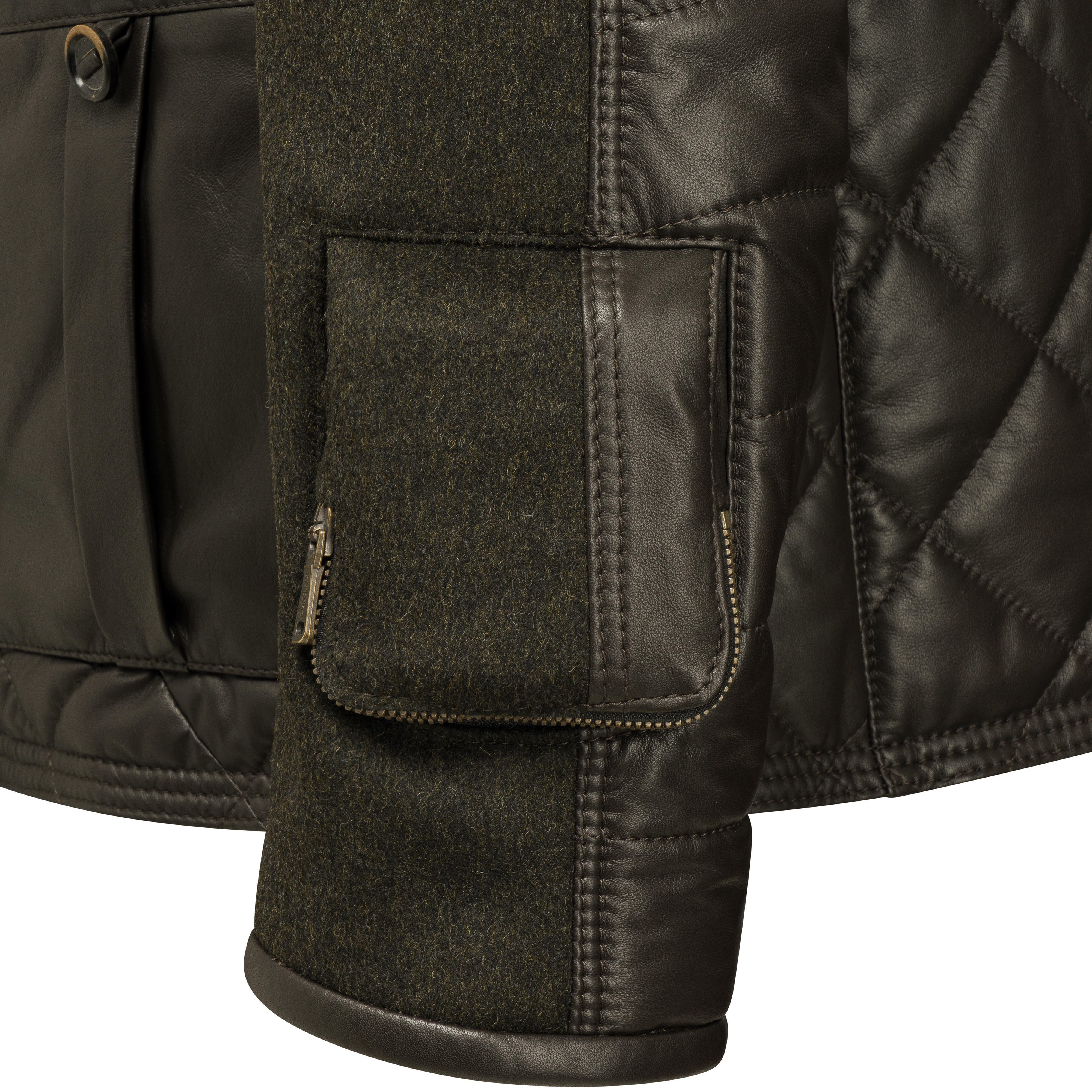The semi-automatic YKK zips not only guarantee the highest quality, but also silent handling. A practical cartridge pocket on the left sleeve allows quick reloading. Leather piping on the edges provides additional protection against wear, while integrated cuffs at the sleeve ends act as windbreakers and protect against the elements.