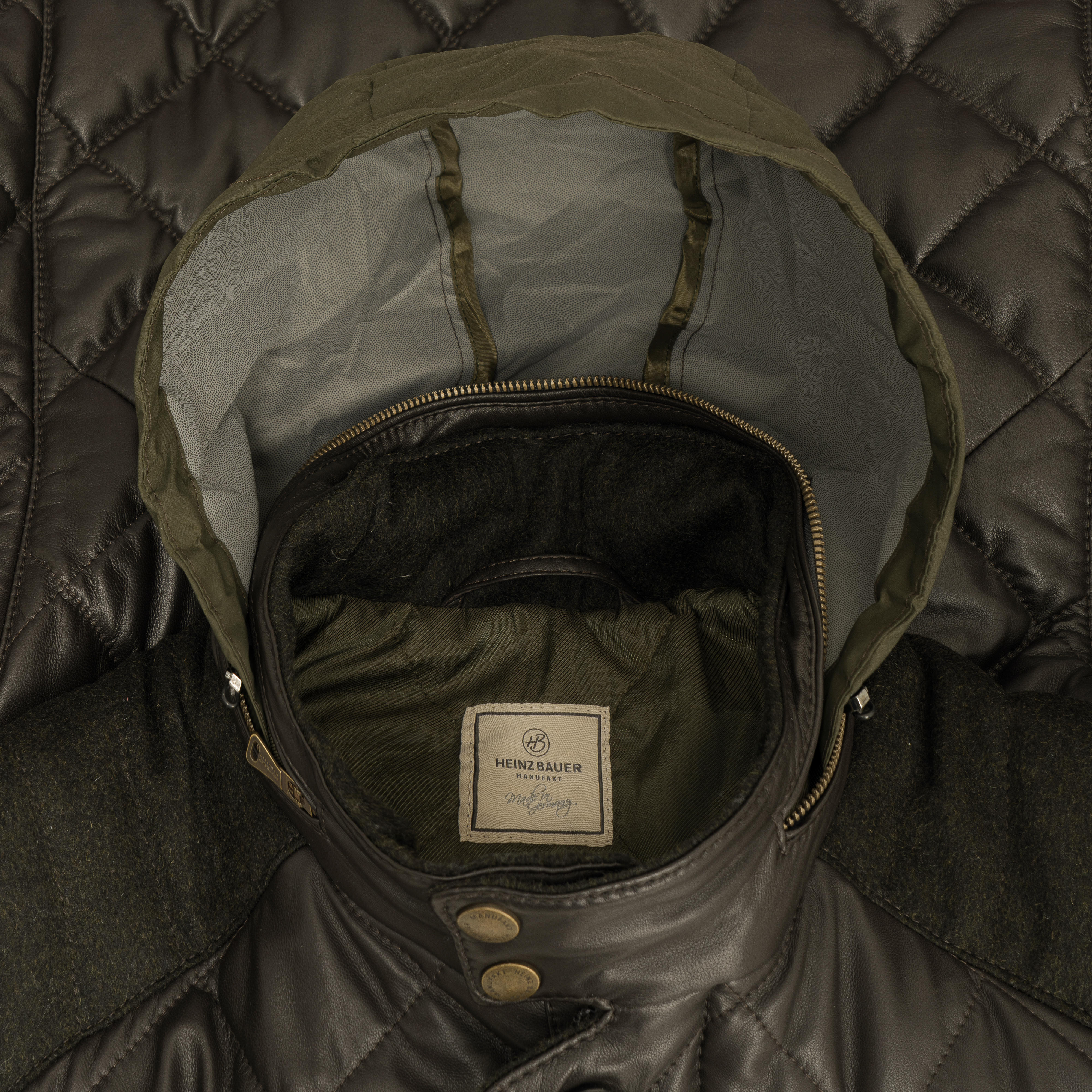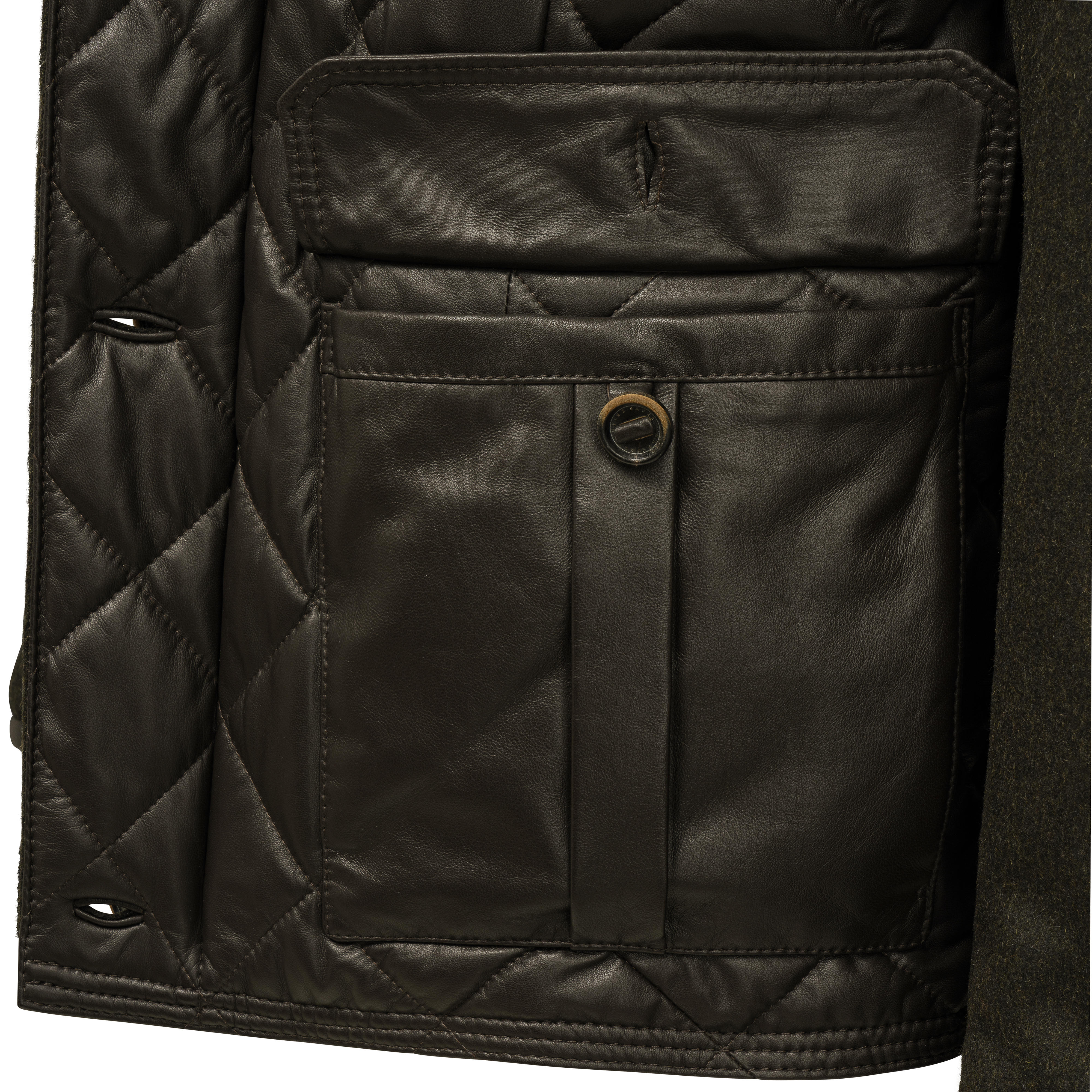 A concealed hood in the collar pocket and genuine buffalo horn buttons, skilfully fastened with sturdy leather straps, are evidence of the attention to detail. Inside, synthetic high-performance down ensures optimal insulation, while high-quality loden and an insulating lining in the sleeves provide additional comfort.
