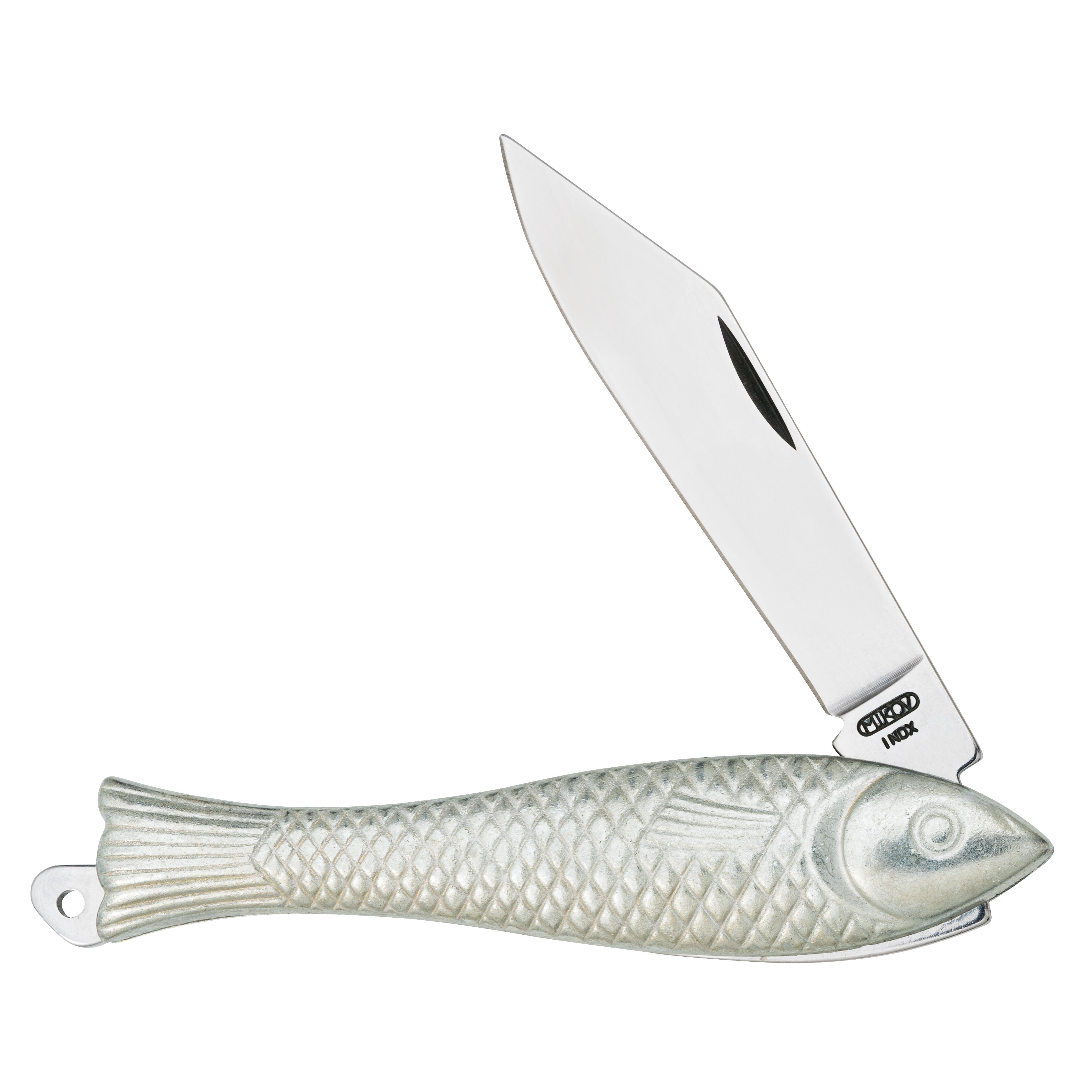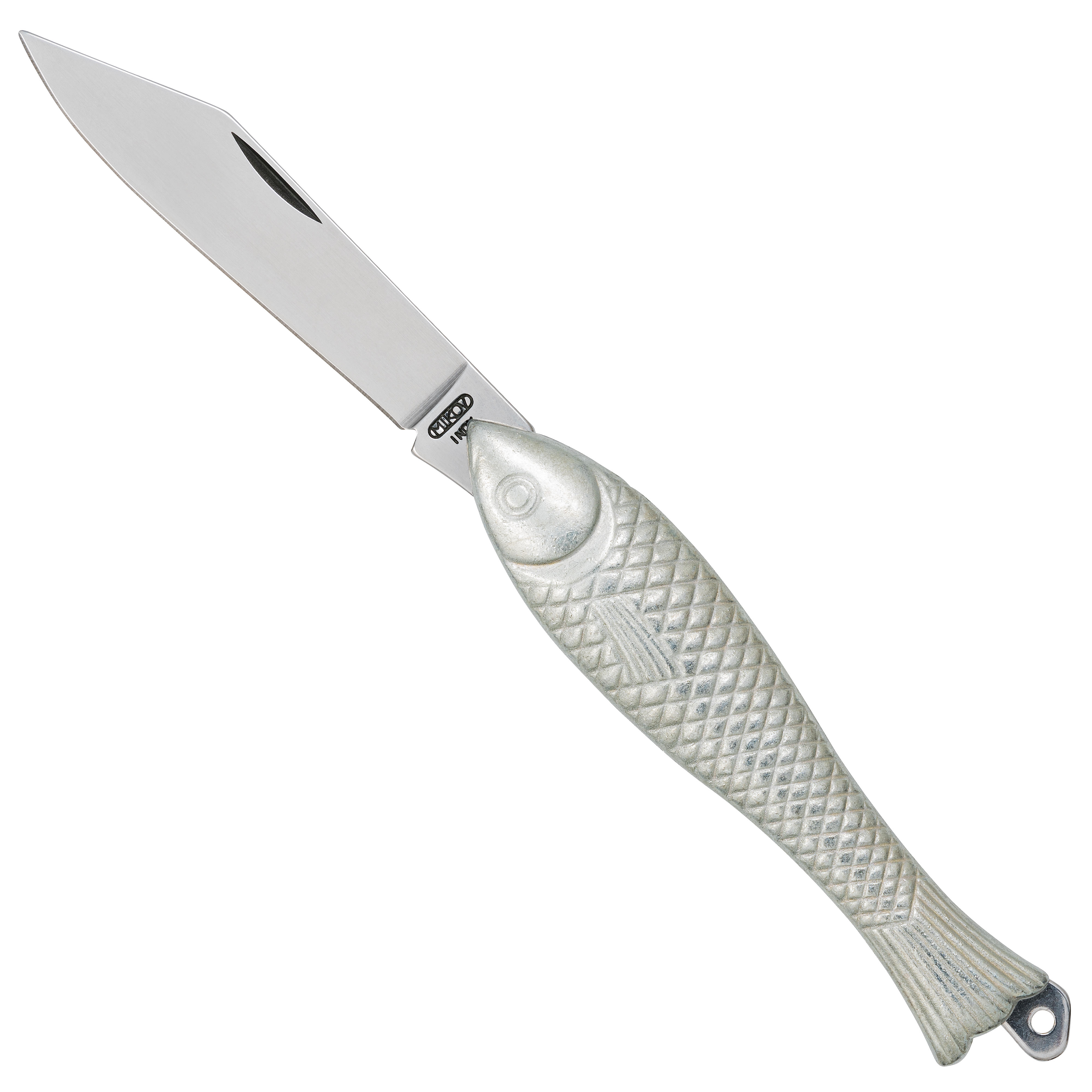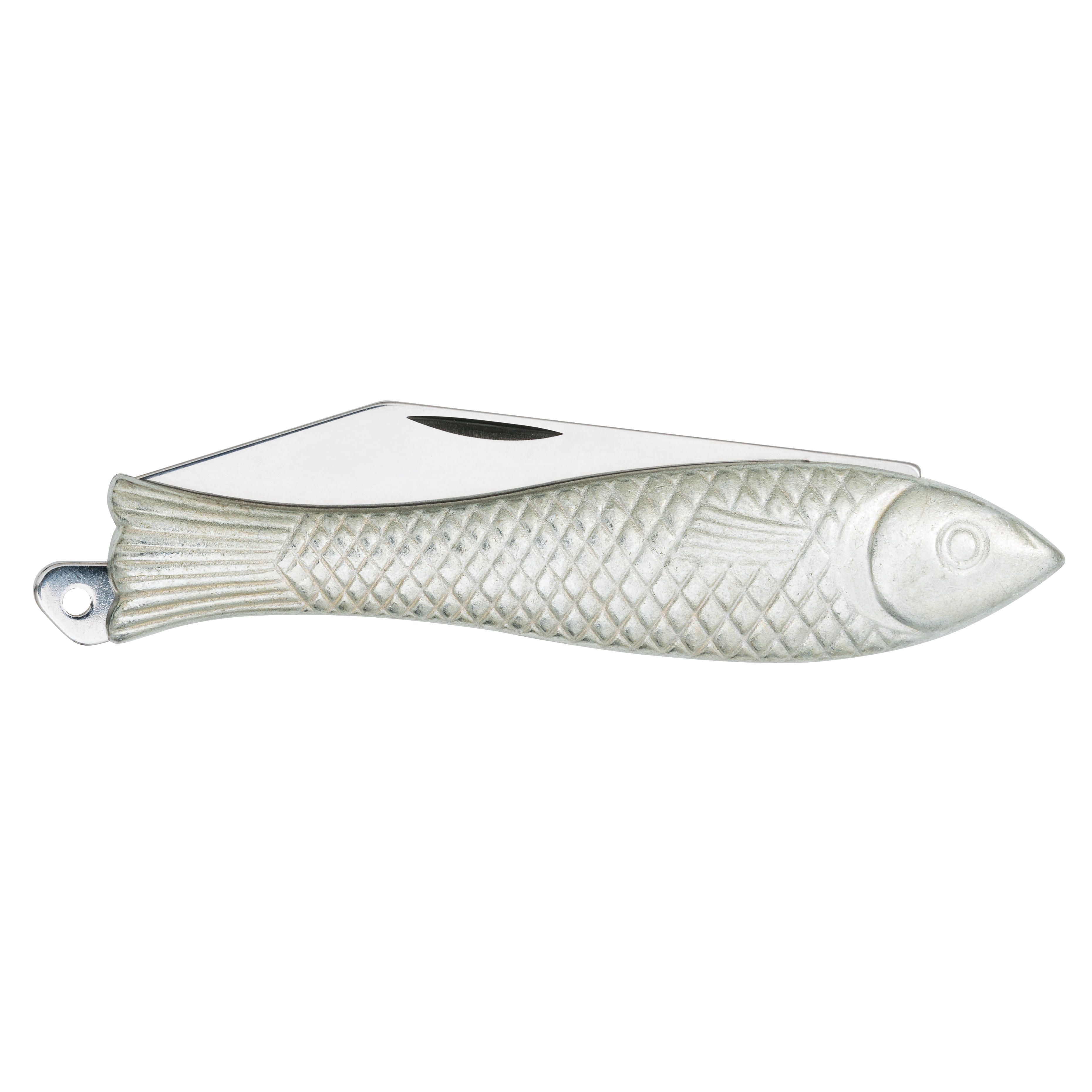 - Iconic fish-shaped pocket knife