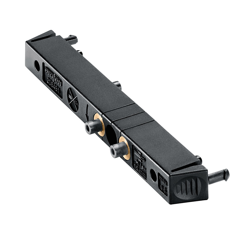- The patented alignment system with spring-loaded stop pins in the baseplate has simply been adapted for the new side fence set SA 320. It allows pairs of holes to be drilled a long distance from the reference edge, and repeated, very easily without any need for marking.