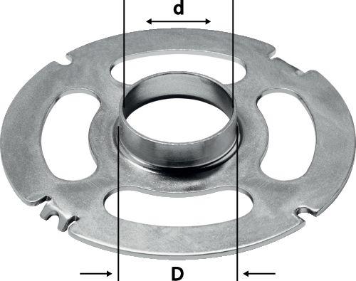 Kopierring zur sicheren Führung der Oberfräse beim Fräsen mit einer Schablone. Hierbei spielt es keine Rolle, welche Form die Schablone hat.