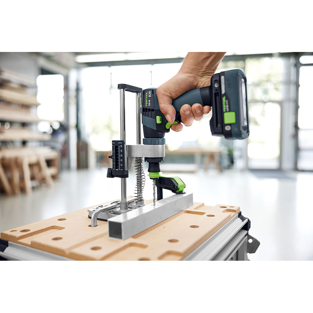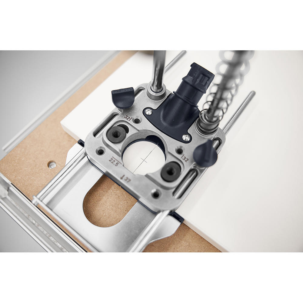 - Vaste palette d'accessoires : avec guide parallèle et butée de perçage frontal PA-MB 40 pour percer avec une parfaite précision plusieurs trous identiques dans les chants de panneaux, ou adaptateur pour rail de guidage FSA-MB 40 pour percer dans les pièces à travailler longues et larges
