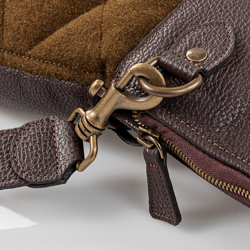 - Matériau 90 % laine, 10 % polyester, garnitures en cuir