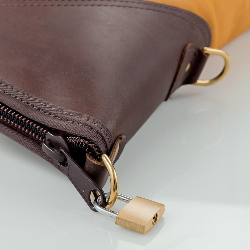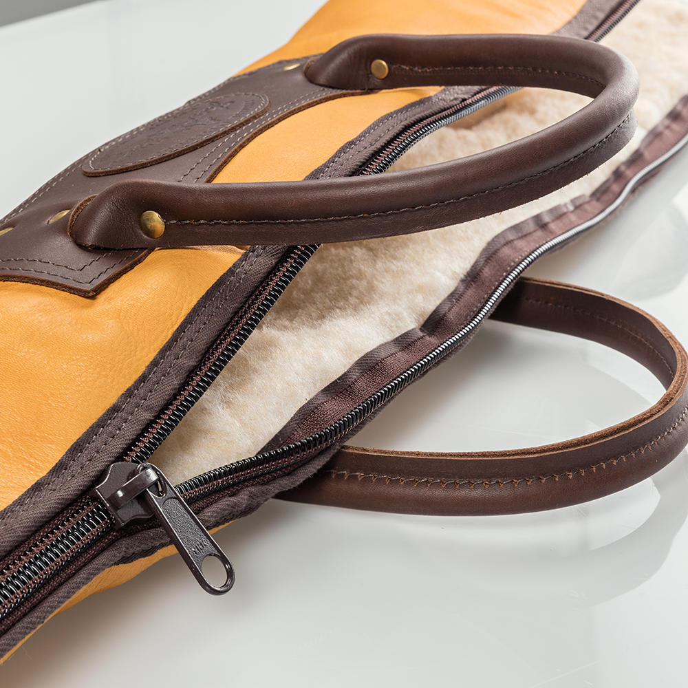 L'intérieur doublé de laine polaire Sherpa protège le fusil contre les chocs, les rayures et d'autres dommages. La partie du canon du fusil est en outre protégée par des renforts en cuir de vachette robuste. Une fermeture éclair sur toute la longueur permet de ranger l’arme en toute sécurité et d'y accéder facilement. Si nécessaire, la fermeture éclair peut être fermée à l'aide d'un cadenas (non fourni dans la livraison). Deux poignées en cuir et une bandoulière amovible en sangle de coton robuste garantissent un confort optimal lors du transport de l’arme, que ce soit en déplacement ou sur des terrains accidentés. Les finitions haut de gamme, comme les boucles en laiton massif, soulignent la grande qualité de ce fourreau pour fusil. Le contraste harmonieux entre les deux qualités de cuir fait de ce fourreau un accessoire élégant et pratique pour les amateurs de la chasse qui apprécient l'esthétique fonctionnelle.