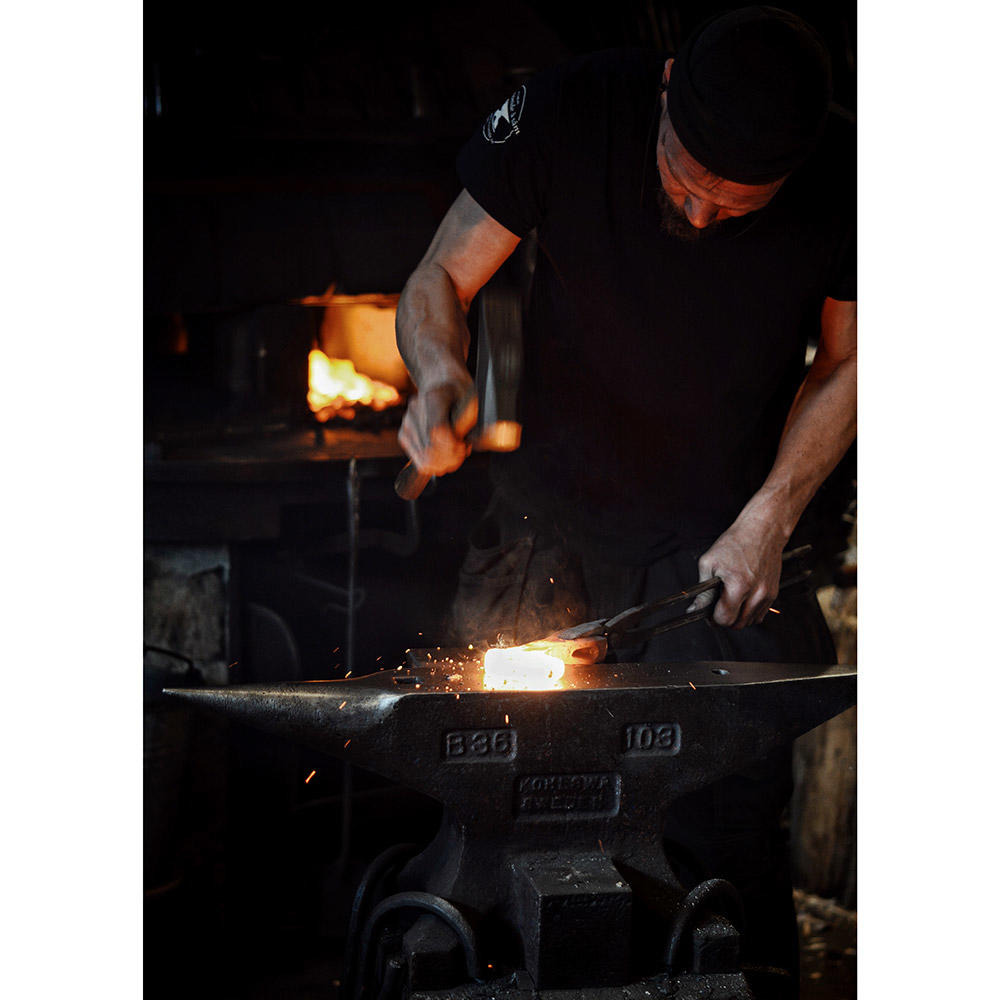 Frederik Thelin, originaire d'un petit village suédois près de la mer Baltique, est un forgeron professionnel plein de passion et de fougue depuis plus de 25 ans. Il s’est intéressé aux haches historiques datant du début et jusqu’à la fin de l'époque viking.