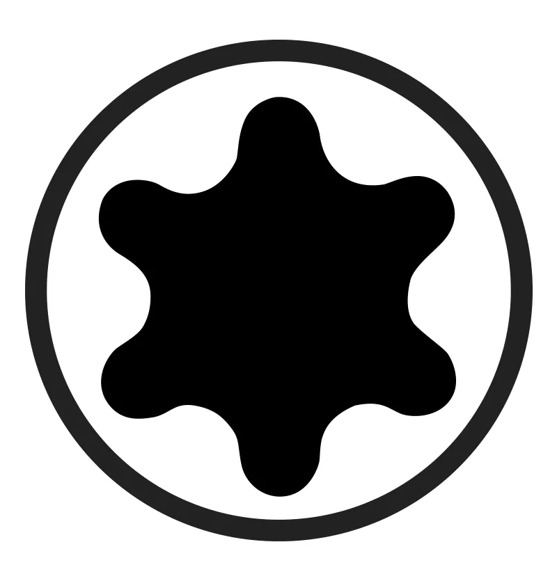 L'entraînement Torx a l'avantage de créer une surface de préhension encore plus grande pour l'embout. Au lieu de deux fentes, comme pour la vis cruciforme, trois fentes sont ici formées, au sens figuré, en une sorte d'étoile ou de roue dentée. L'arrondissement des coins (Forme ondulée) permet de réduire la fatigue du matériau. Dans le cadre d'une utilisation professionnelle, les vis Torx sont devenues la norme.