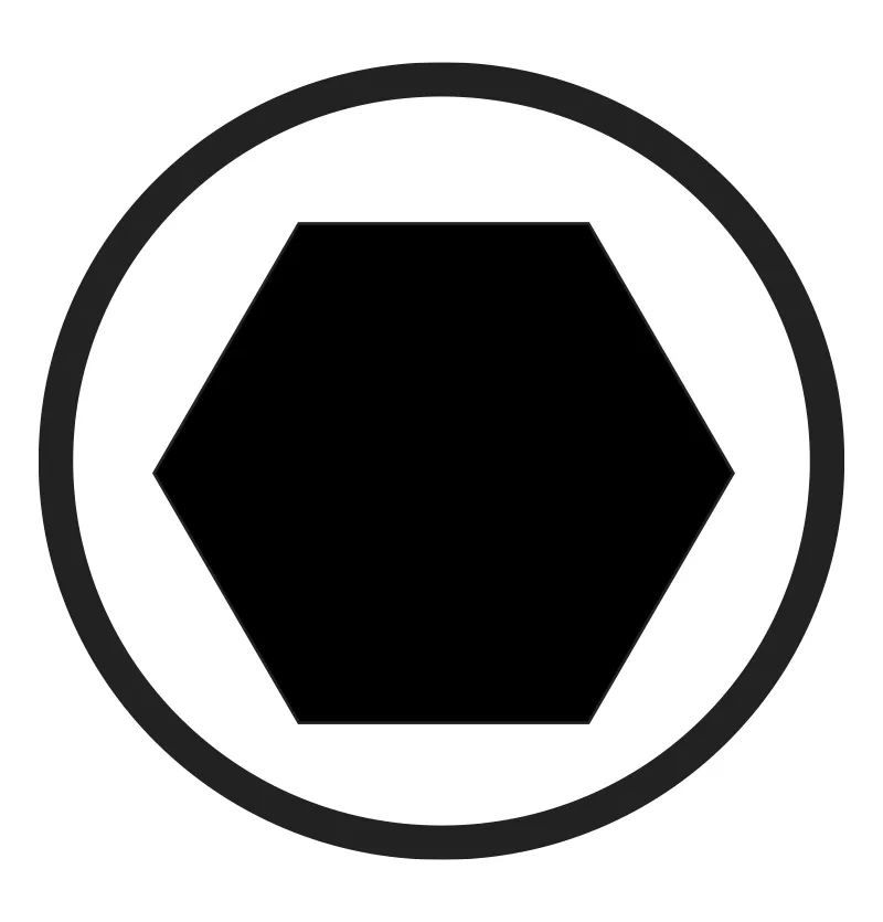 La vis à six pans creux, connue en Allemagne sous le nom de marque "Inbus", peut également être considérée comme une évolution de la vis cruciforme. La Forme massive de l'embout offre une grande surface de préhension tout en étant très robuste. Toutefois, cette Forme d'entraînement n'est pas adaptée aux visseuses à grande vitesse et est donc généralement déplacée à la main. Elle trouve son Application de préférence dans le domaine du métal.