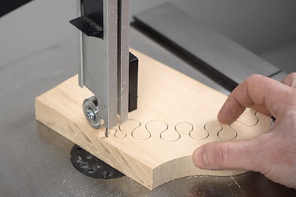 Pour les coupes courbes, par exemple lors de la découpe d'ébauches de coques épaisses pour les tourneurs sur bois. Grâce à la denture supplémentaire sur le dos du ruban, le frottement est réduit dans les courbes et le ruban se coupe librement.