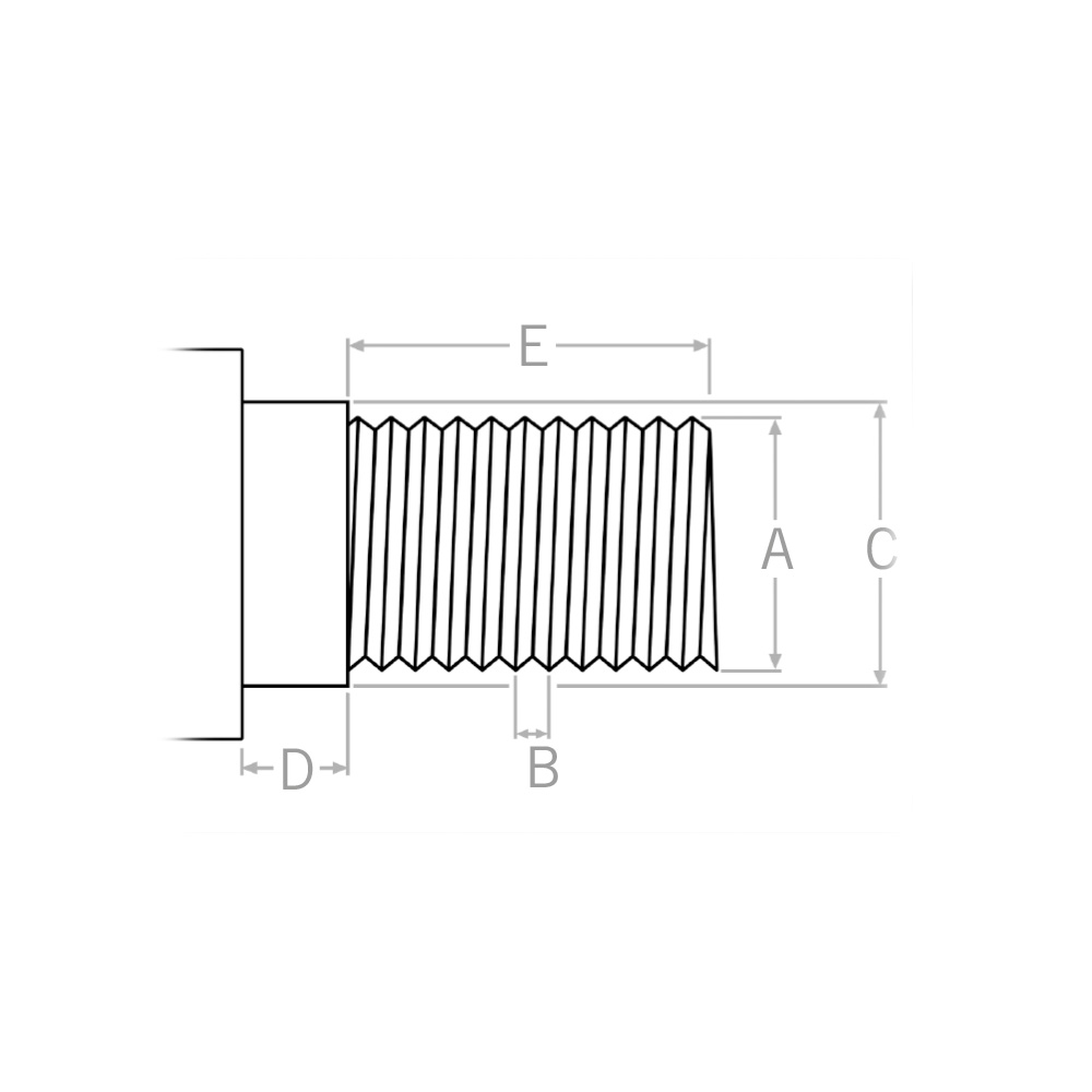 La profondeur de l'épaulement, le diamètre de l'épaulement et la profondeur de la tige sont normalisés pour la plupart des filetages (par ex. les filetages DIN 800) et sont adaptés les uns aux autres pour de nombreux filetages. Ils devraient néanmoins être indiqués lors de la demande d'un adaptateur/accessoire approprié. Mesurez le diamètre du collet (voir figure 4, dimensions C), la profondeur du collet (voir figure 4, dimensions D) et la profondeur de la tige (voir figure 4, dimensions E).
