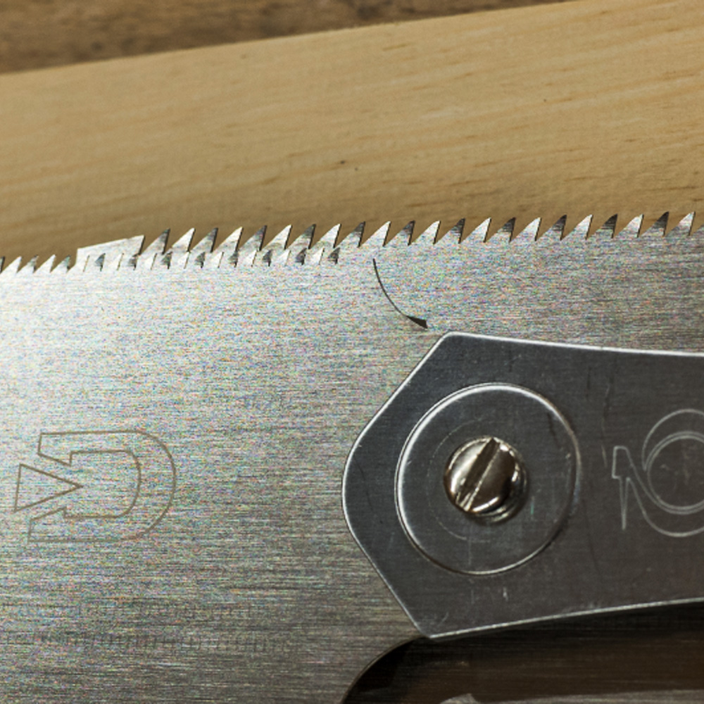 La plupart des scies japonaises que vous trouverez chez nous sont équipées de lames de scie interchangeables dont les dents sont trempées par impulsions et ne peuvent pas être affûtées. Ces lames de scie se distinguent par une longue durée de vie et une bonne tenue de coupe. Si la lame de scie s'émousse ou est endommagée par une mauvaise utilisation, il suffit de la remplacer. Nous tenons des lames de scie de rechange en stock à long terme, ce qui vous permet d'acquérir la lame de rechange adéquate même après des années. Seuls quelques Ryoba, comme nos scies Deluxe, qui sont fabriquées dans de petites manufactures japonaises, ont des lames de scie fixes. Vous pouvez affûter ces scies à l'aide des limes de sciage appropriées.