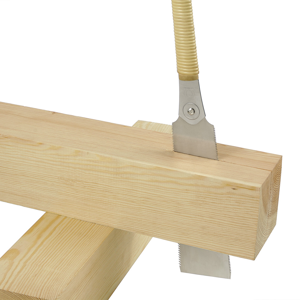 - Poignées de scie pliantes en bois dur pour un transport peu encombrant et pour protéger les dents de la scie (actuellement disponibles uniquement pour Dozuki et Kataba).