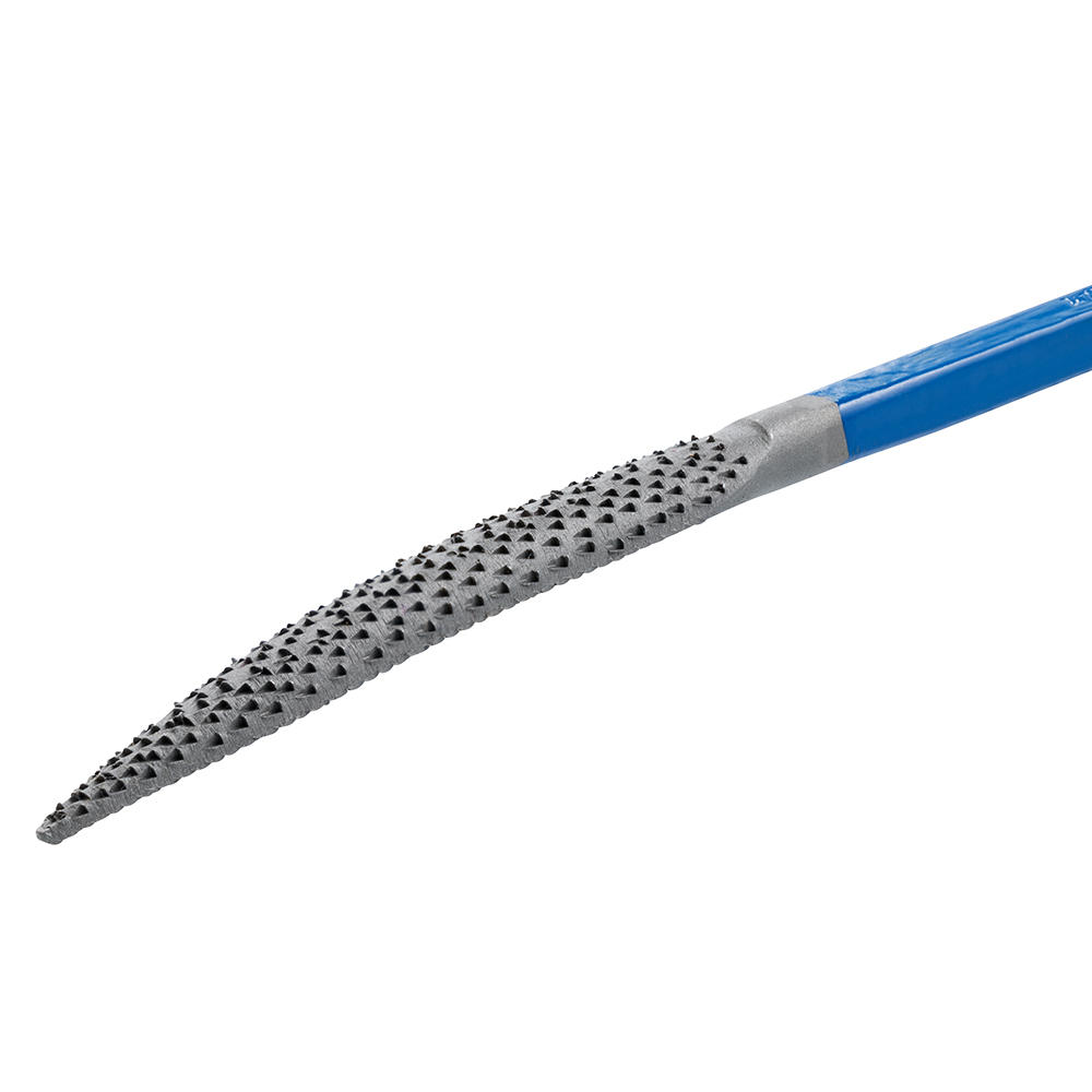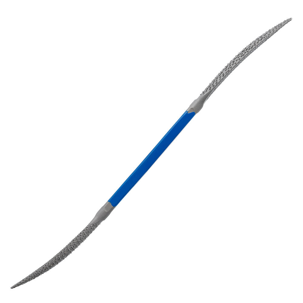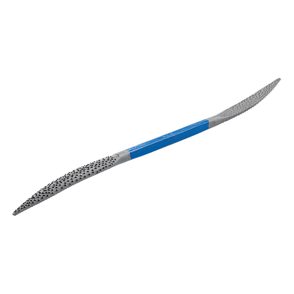 Taillée et trempée avec le plus grand soin par des Maîtres en la matière. Pour le traitement des surfaces concaves ou convexes. Denture des deux côtés, courbure alternée. Pièce centrale forgée avec des arêtes tranchantes.