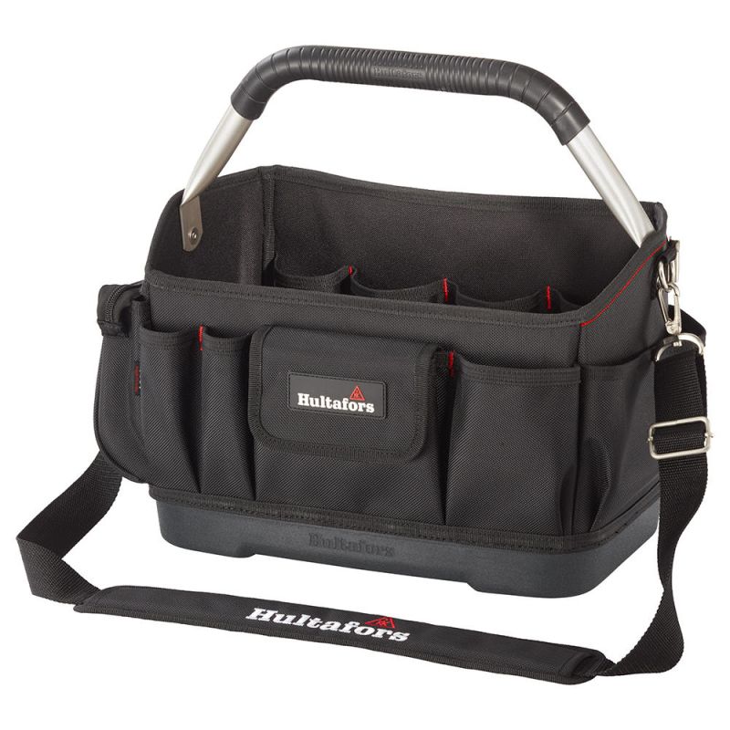 Sacoche à outils ouverte en polyester balistique, conçue pour offrir une résistance et une durabilité maximales, capable de faire face aux conditions difficiles des chantiers et des ateliers. Le large compartiment principal est équipé de pochettes pratiques, de boucles élastiques pour les ciseaux à bois, de porte-stylos et de crochets à déclic. La poignée de transport caoutchoutée peut être rabattue sur le côté, ce qui permet un accès facile et une bonne vue d'ensemble.