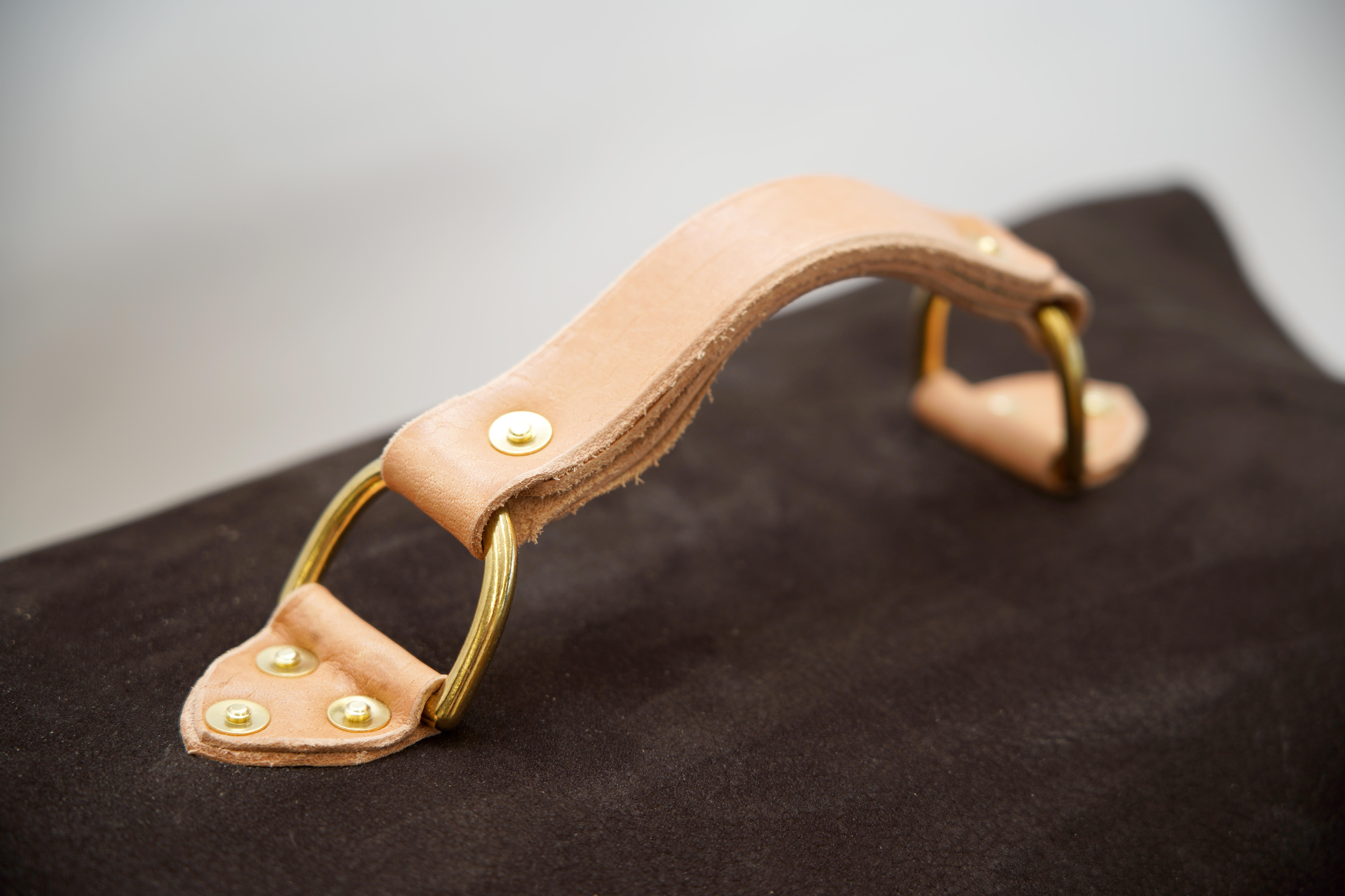 - Découpe du matériau au cutter et au couteau à cuir et poinçonnage des trous.