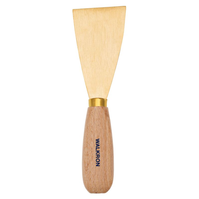 La spatule en laiton est équipée d'une lame solidement enfoncée dans un matériau spécial en laiton, et est finement rectifiée. Elle est équipée d'une grande poignée en bois et est en outre sécurisée par une bague en laiton, ce qui garantit une manipulation stable. La spatule en laiton convient spécialement aux travaux dans des zones sensibles, où les matériaux doivent être nettoyés, enlevés ou lissés sans endommager les surfaces fragiles.