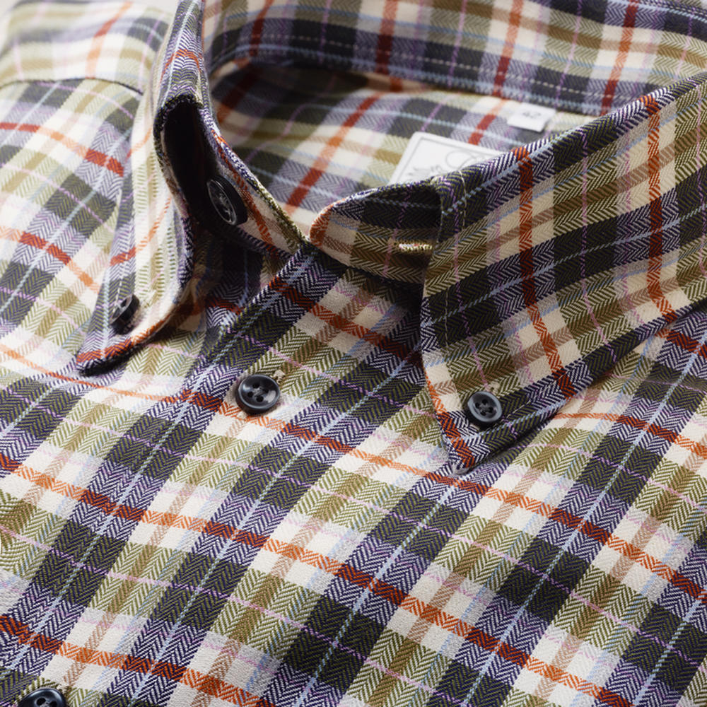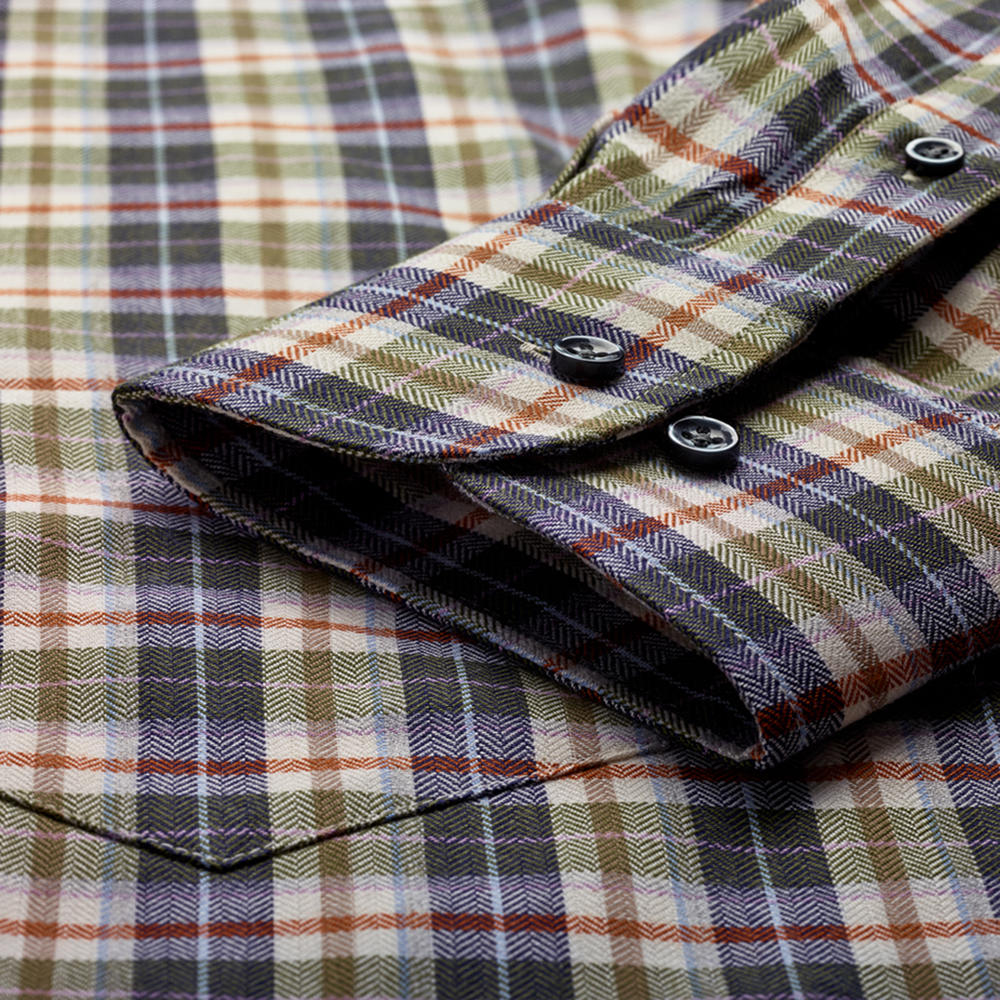 Herrenhemd Fischgrat, Karo, grün/rotbraun