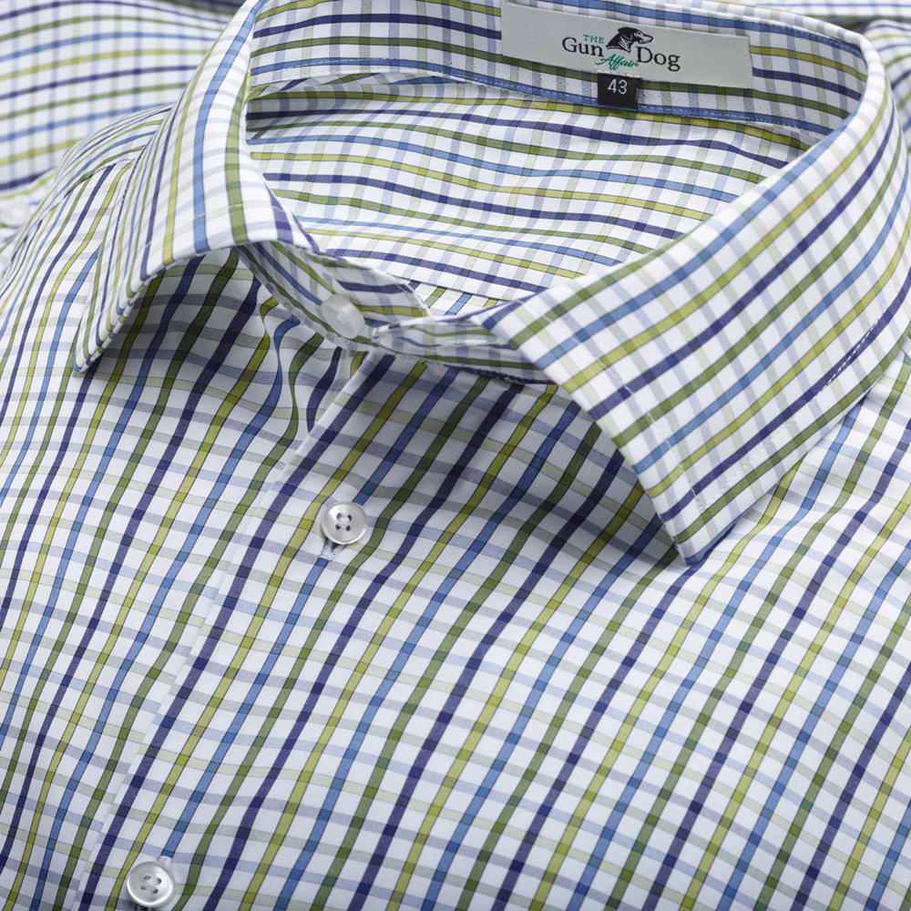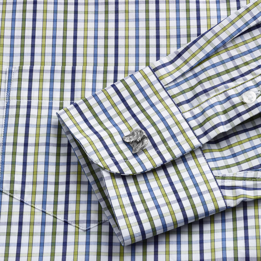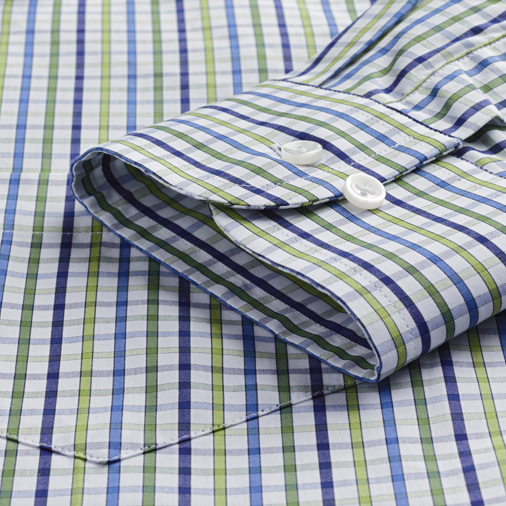 Herrenhemd Karo, blau/grün/weiß, Kombimanschette