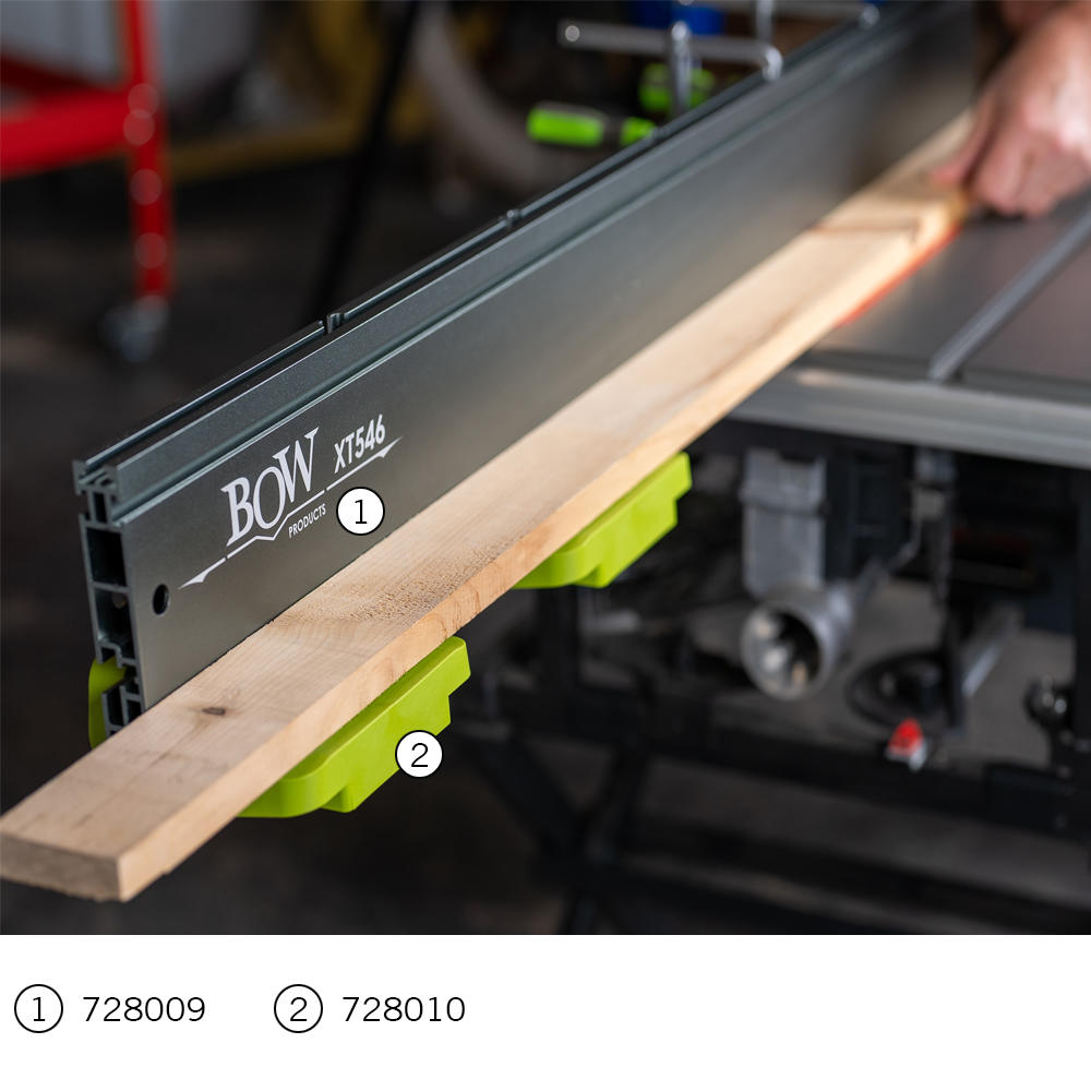 XTENDER può essere facilmente fissata alla maggior parte delle battute parallele esistenti su seghe circolari, seghe a nastro e fresatrici mediante due morsetti per macchina. Il profilo in alluminio estruso ultraresistente con sezione trasversale di 2,5 x 12,7 cm è ultra stabile e anti-torsione e offre un'ampia superficie di contatto, un grande vantaggio soprattutto nei tagli di disfacimento.