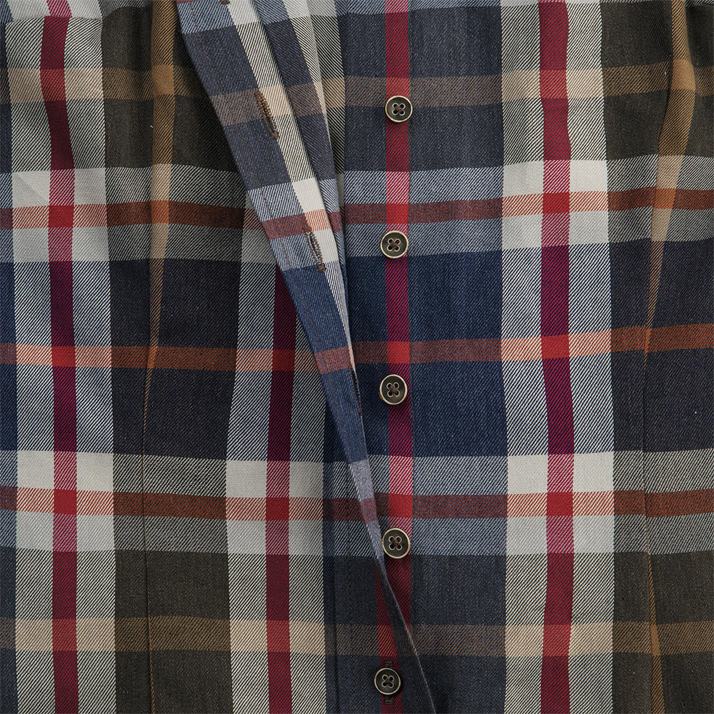 Button-down Blouse, 100 % Cotton Flannel, Chequered