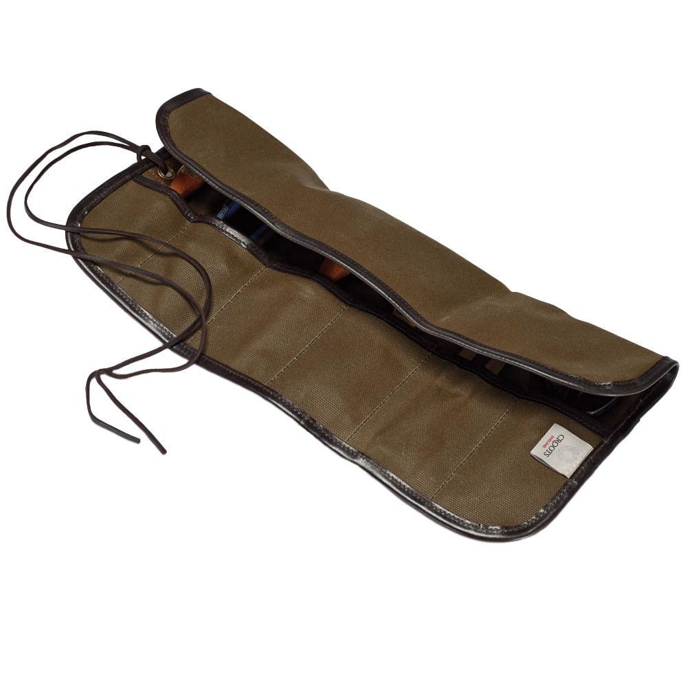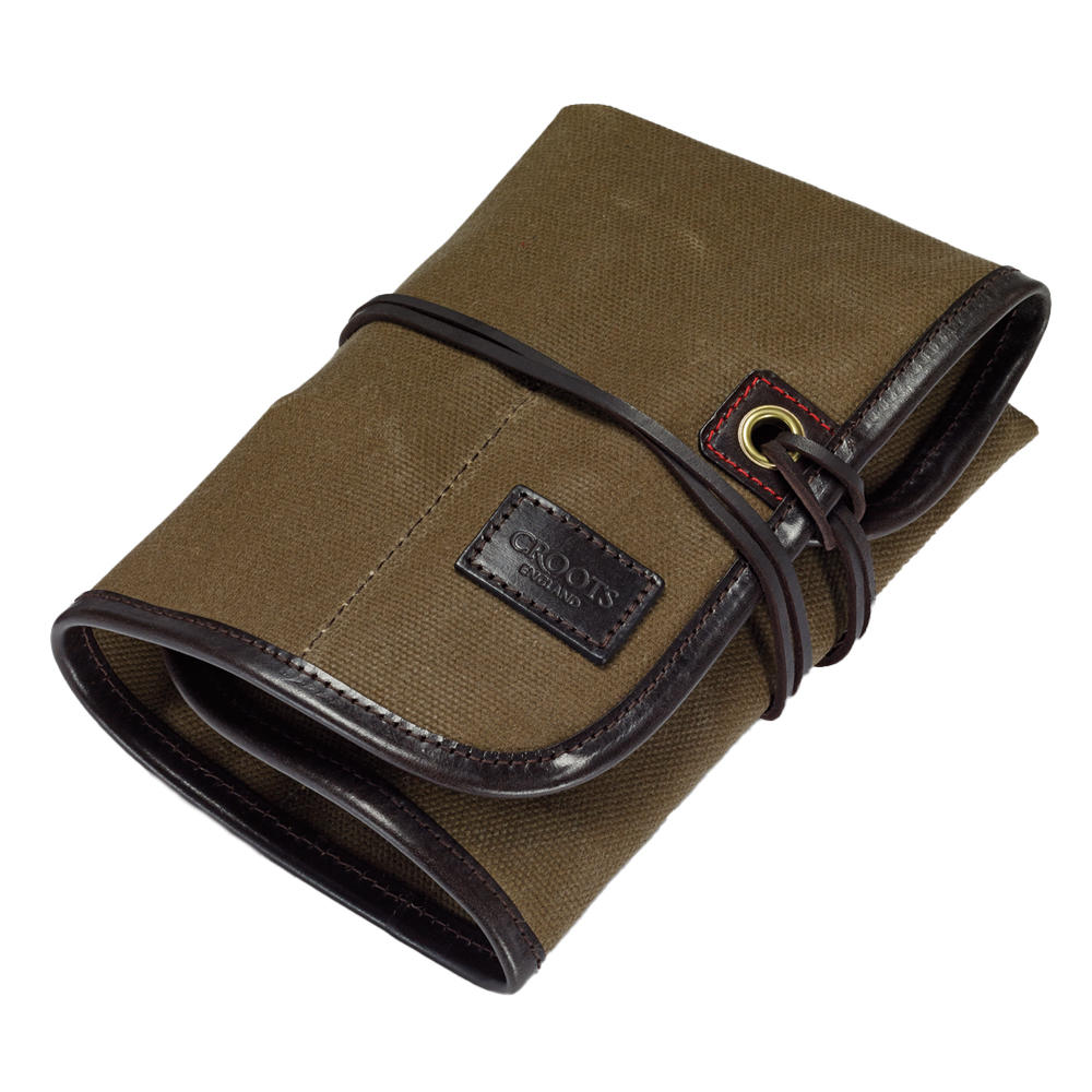 Realizzato in robusto tessuto »Dry Wax« da 24 once, questa borsa portautensili arrotolabile offre una protezione eccellente, sia al poligono di tiro, sia sul terreno di caccia che in officina. Il tessuto resistente proviene dalla tradizionale azienda tessile scozzese Halley Stevensons, che sin dal 1864 realizza materiali di alta qualità sviluppati per affrontare condizioni avverse. La finitura »Dry Wax« garantisce le proprietà idrorepellenti della cera tradizionale, senza la sensazione cerosa al tatto. Con il tempo, il tessuto sviluppa delle pieghe in modo naturale che gli conferiscono un carattere distintivo e singolare.