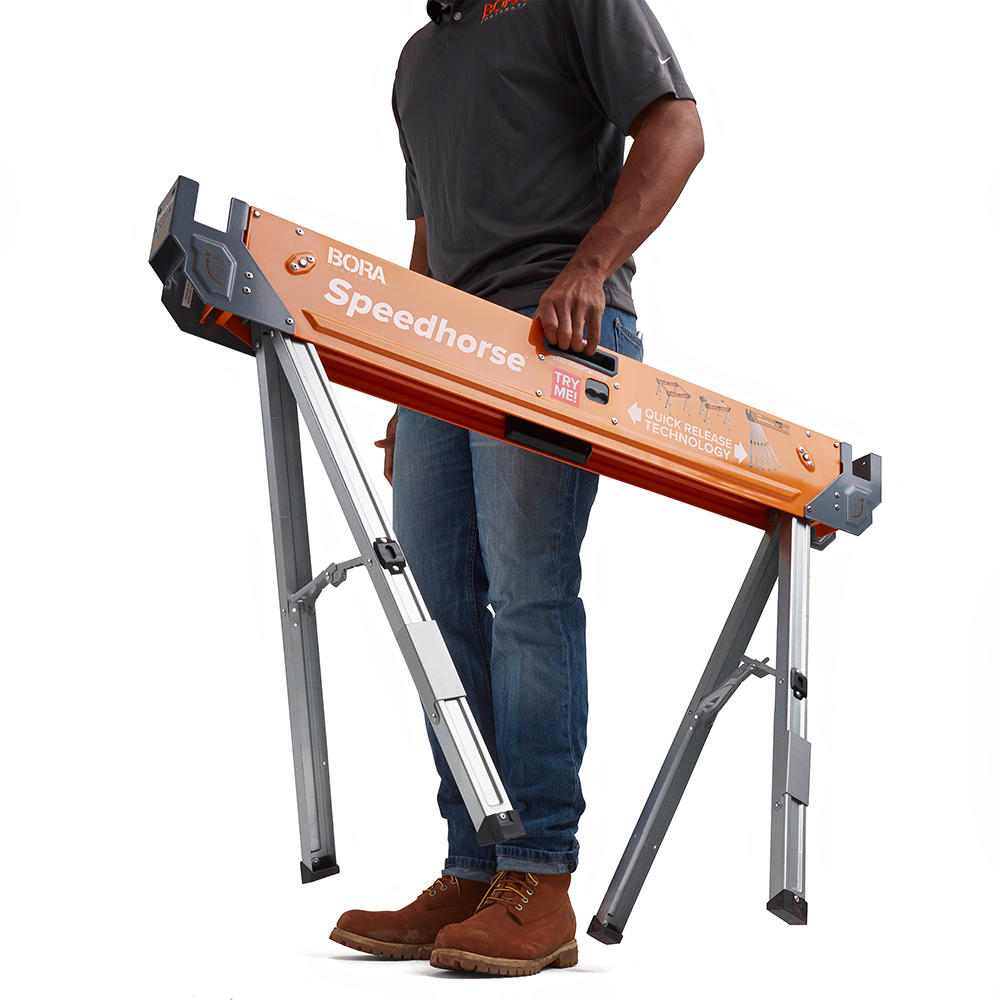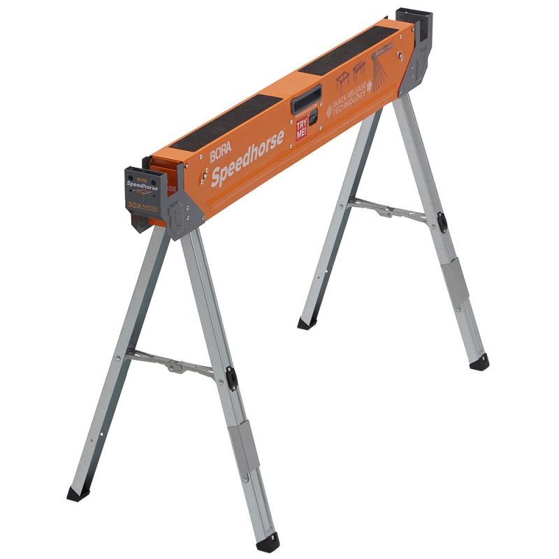 Cavalletti da lavoro Bora Speedhorse: I cavalletti da lavoro in robusta struttura d'acciaio sono la soluzione ideale per utilizzi professionali in officina e in cantiere. Grazie all'innovativo meccanismo, le gambe possono essere ripiegate in pochi secondi con una sola mano.