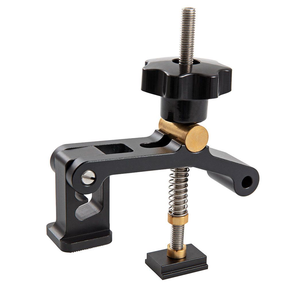 Posizionamento: non solo i pezzi devono essere posizionati ad Angolo retto o a distanza esatta, ma anche le guide o altri Accessori devono essere posizionati con precisione per la foratura, la Scies o la fresatura. Cani da banco, perni, supporti per guide ecc. contribuiscono a questo scopo. Questo facilita il lavoro, soprattutto per le produzioni in serie e per i lavori in rapida successione.