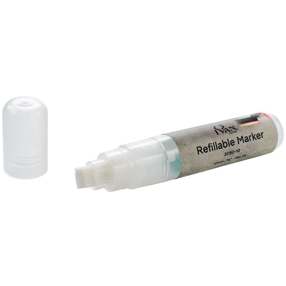 Das Auffüllen gestaltet sich sehr einfach. Schrauben Sie den Kopf ab, entfernen Sie das Ventil, füllen Sie die Farbe ein, und nachdem Sie alles wieder verschlossen haben, sorgen die Mischkugeln im Inneren dafür, dass die Flüssigkeit gründlich vermengt wird. Drücken Sie sanft auf die Spitze, um die Farbe präzise freizugeben.