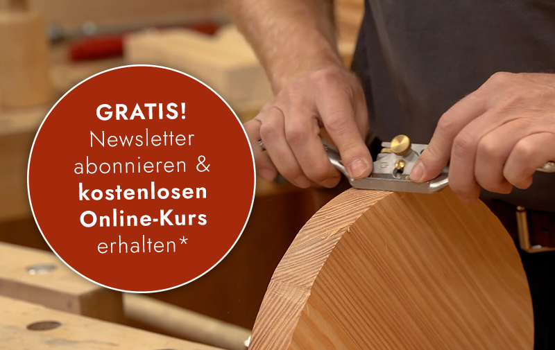 Melden Sie sich während der Aktionswoche zu unserem Newsletter an und erhalten Sie nicht nur Inspiration, Fachwissen und exklusive Angebote – sondern zusätzlich kostenfreien Zugang zum Online-Kurs „Drei-Bein-Hocker selber bauen“.