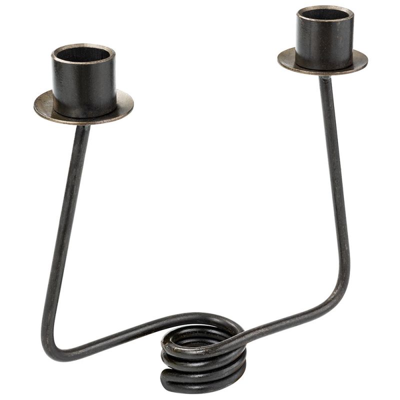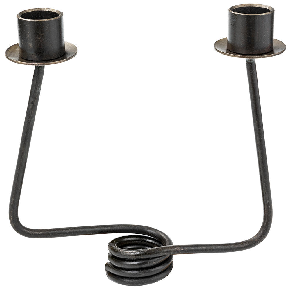 Zweiarmiger Kerzenleuchter aus 6 mm Rundmaterial gewickelt, mit runden Tüllen für Tafelkerzen.